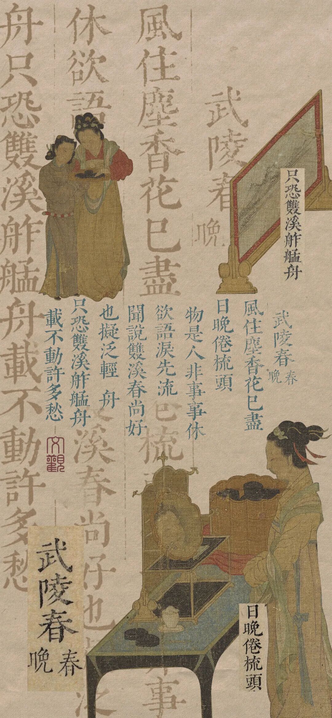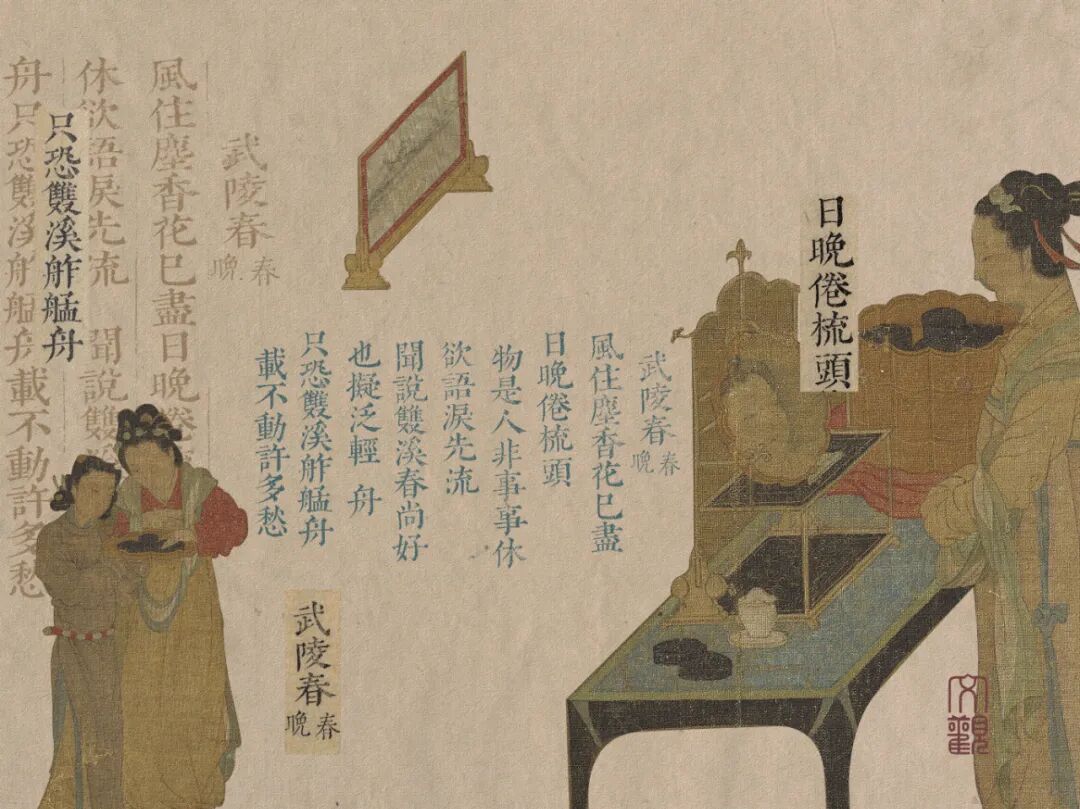 素材:《绣栊晓镜图页》.传宋.王诜绘.绢本设色.台北故宫博物院藏