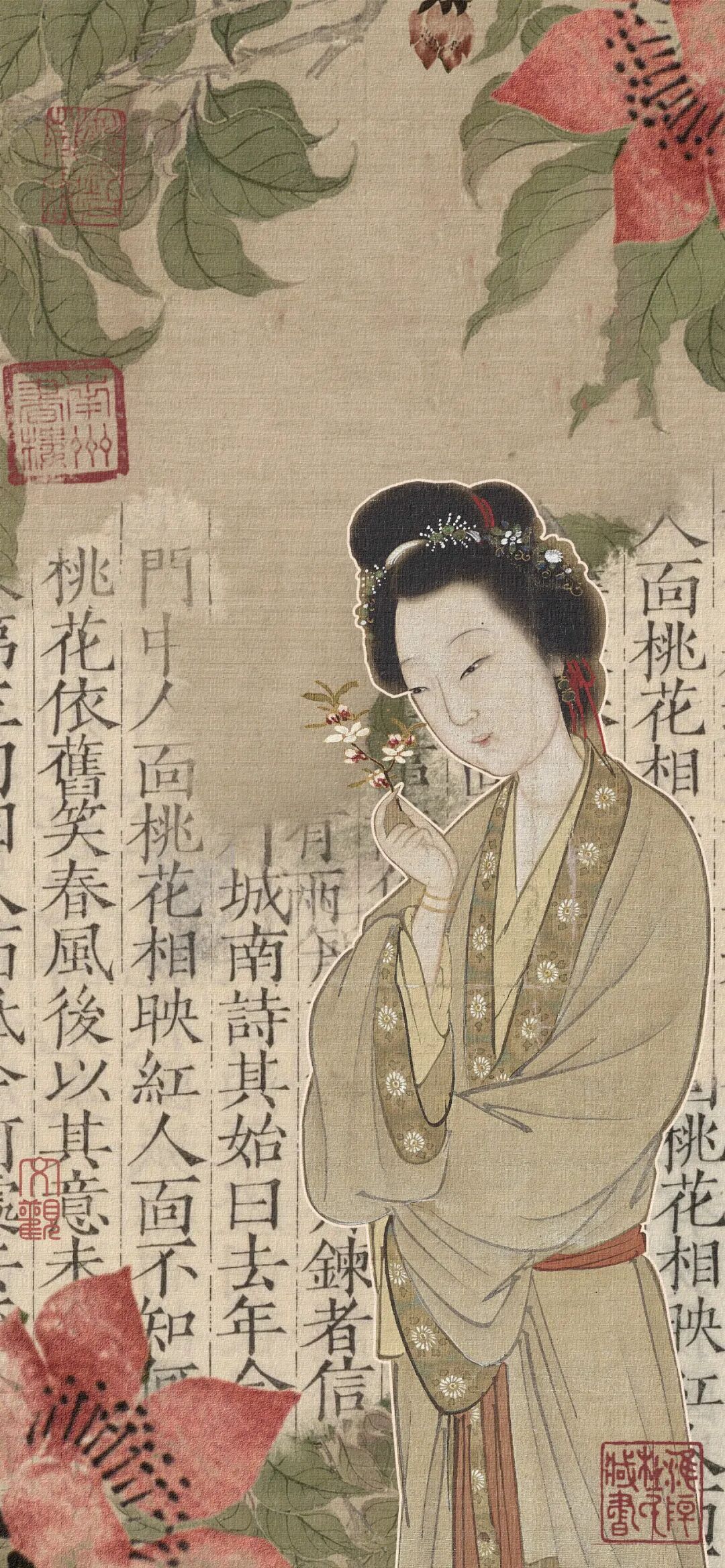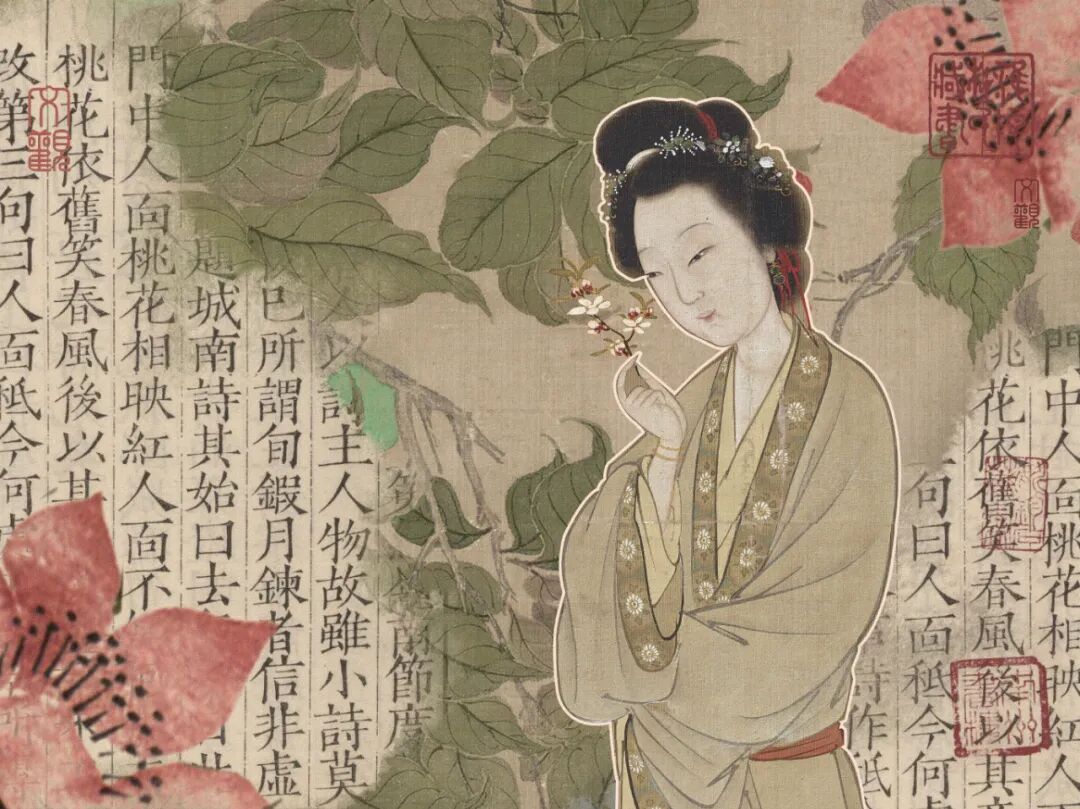 素材:明张纪.《人面桃花图》.绢本立轴设色.101.2x49.7cm.大英博物馆藏.