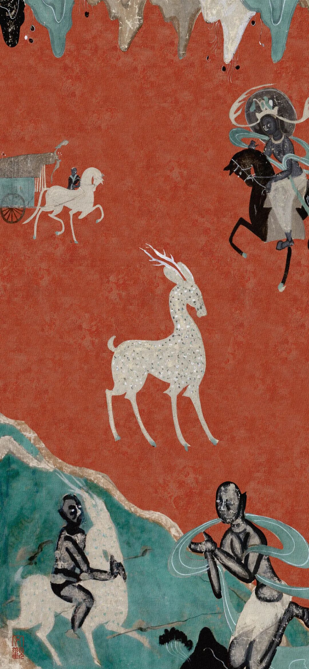 壁画内容是根据《佛说九色鹿经》的故事进行创作,讲述了一个极具宗教色彩,舍己救人的故事。
