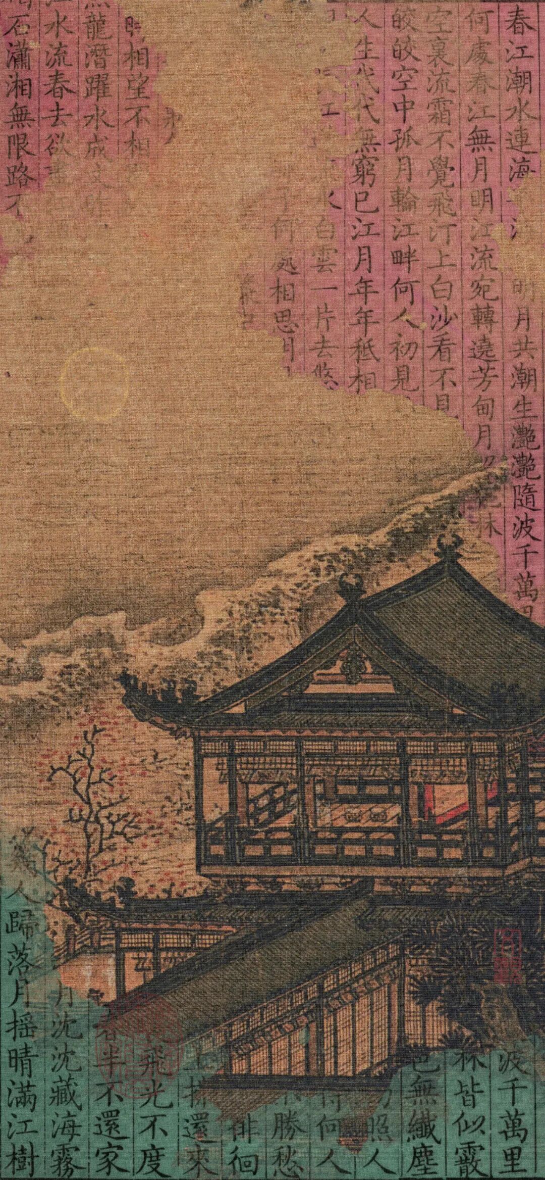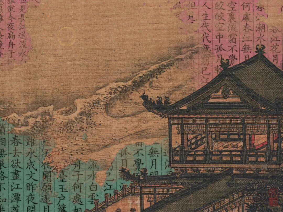 素材:《御定全唐诗录》.卷1-100附全唐诗人年表.清徐倬等编/《月夜看潮图》宋 李嵩 台北故宫博物院