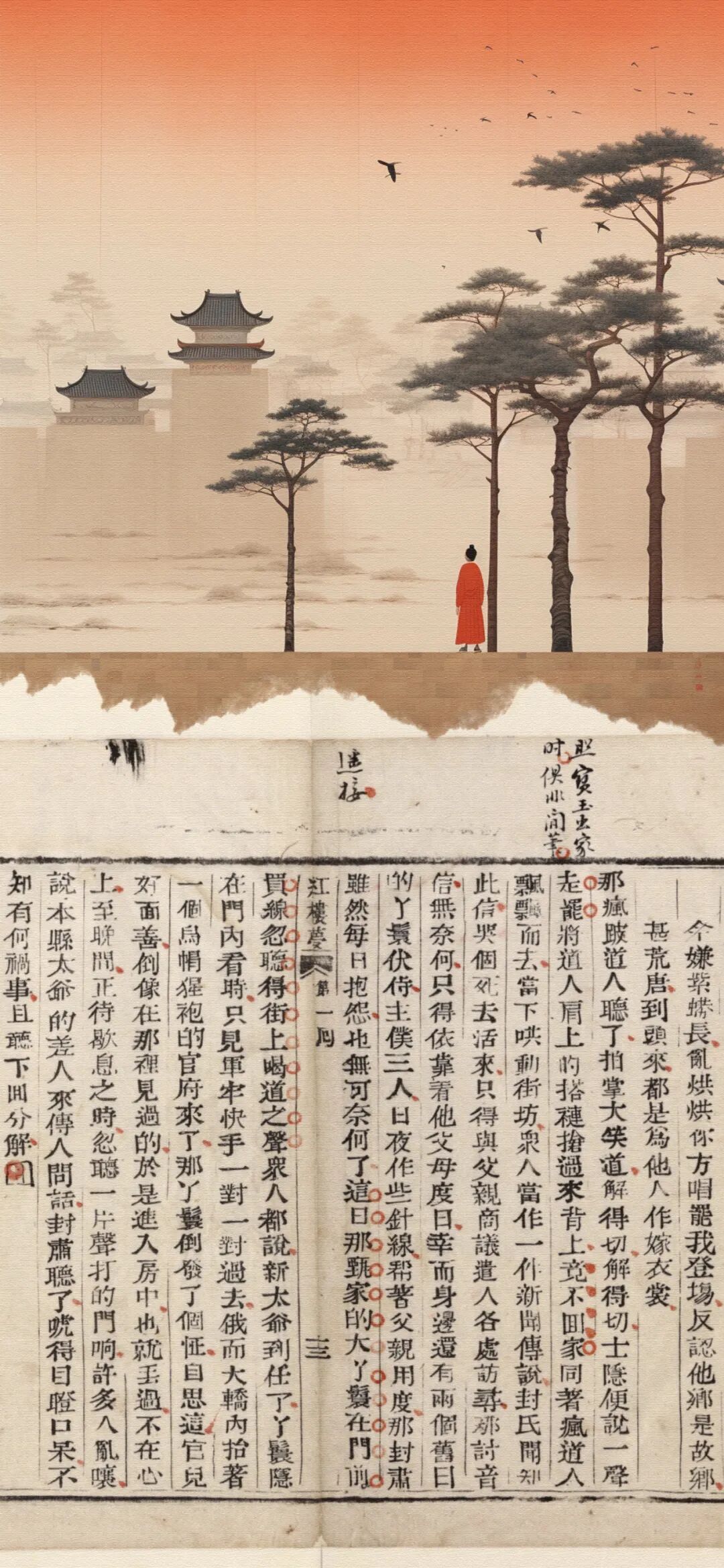 《红楼梦》的开头用神话的方式说明了作品的来源,说女娲补天时剩下一块石头,丢在大荒山无稽崖青埂峰下。后来有茫茫大士和渺渺真人路过,给它施了法力,让它有了灵性,带它下了凡间。经过了无数年代,空空道人来到这里,发现石头上刻着一段故事,就应石头之请,把故事抄下来流传。后来曹雪芹得到了这个故事,花了十年时间审阅修改,增删了五遍,才完成了这本书。书中的故事从甄士隐开始。元宵节那天,甄士隐的女儿甄英莲被人拐走了;不久葫芦庙着火了,甄家也被烧掉了。甄士隐带着妻子去投靠岳父,岳父却是个贪婪无耻的人,甄士隐生活困顿,病魔缠身,无处可去;后来遇到一个跛脚道人,听他唱了《好了歌》,并为他解释《好了歌》的含义。在道人的指引下,士隐觉悟了,跟着道人出家去了。