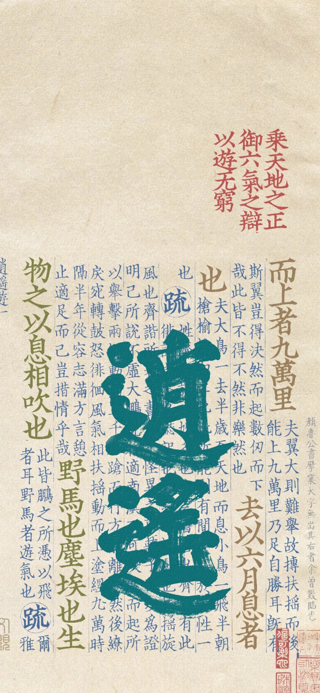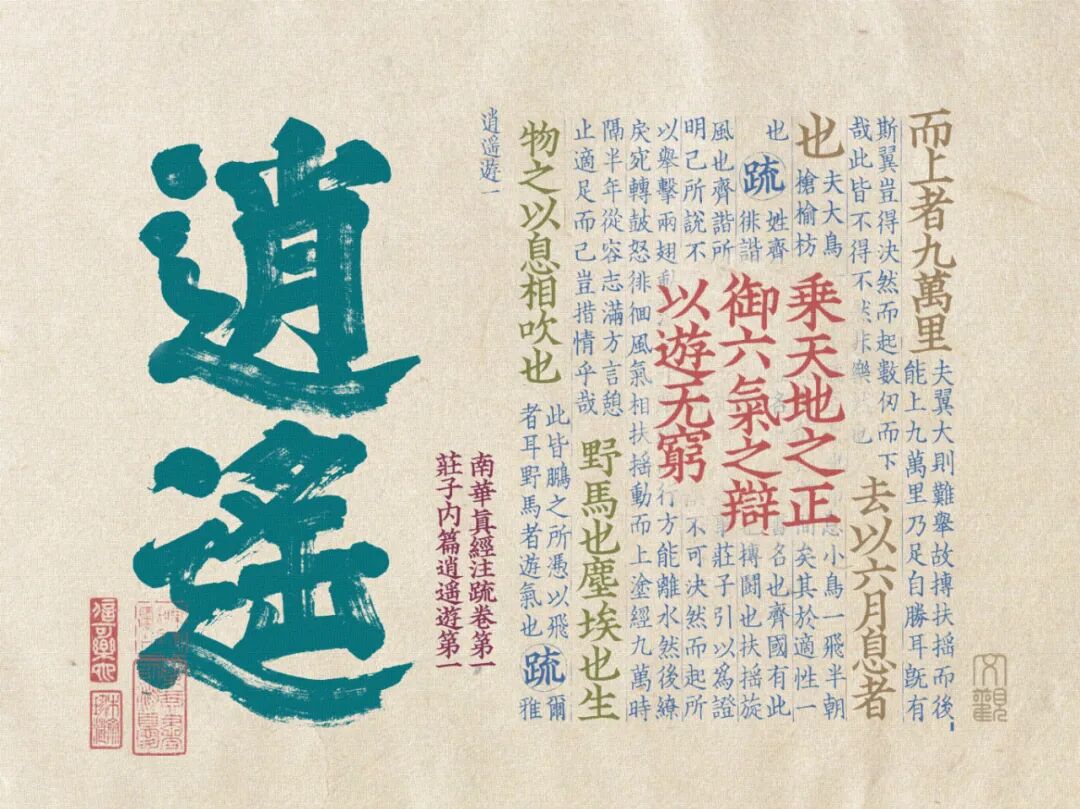 素材:《南华真经注疏》.十卷.晋.郭象注.唐.成玄英疏.清光绪十年遵义黎庶昌日本东京使署景宋刊.古逸丛书本/《逍遥楼》碑文拓印 颜真卿