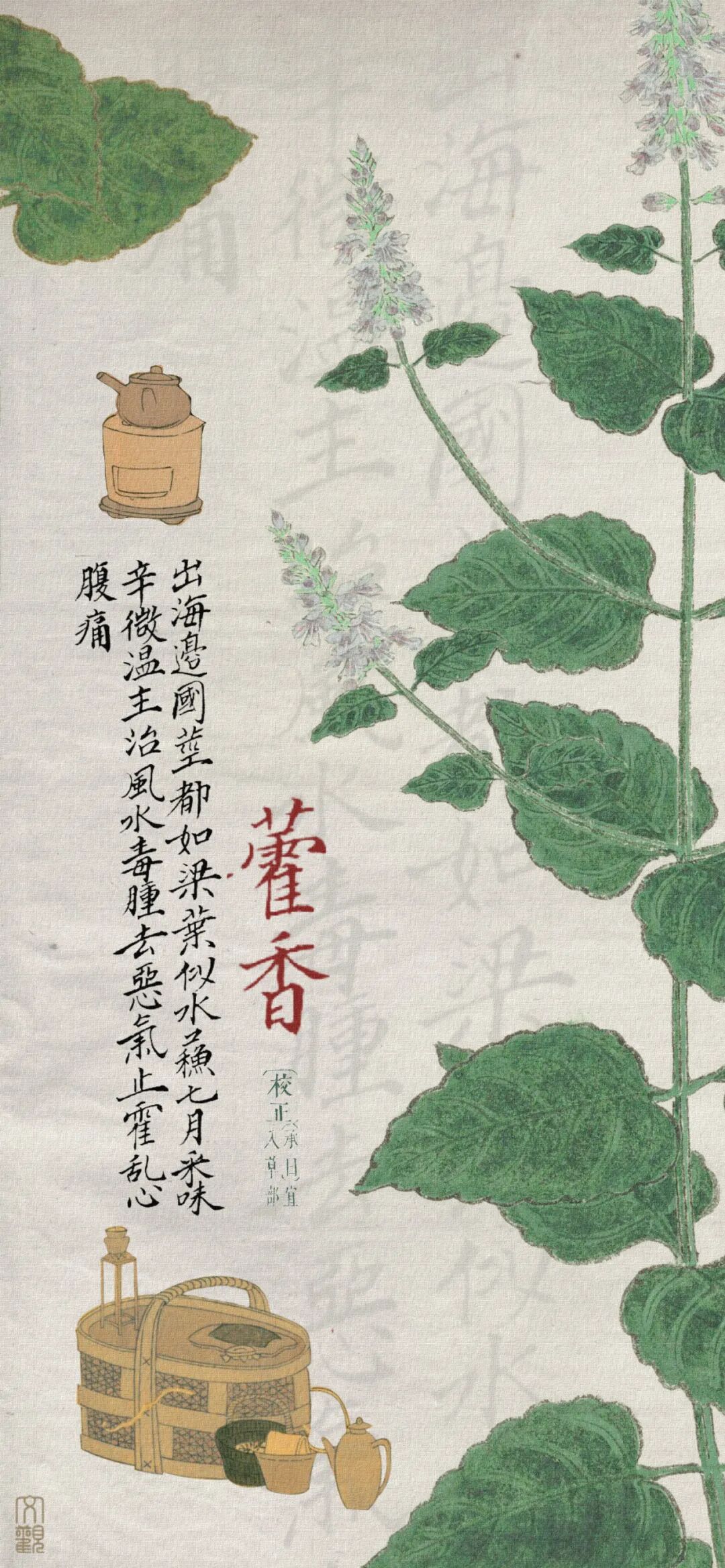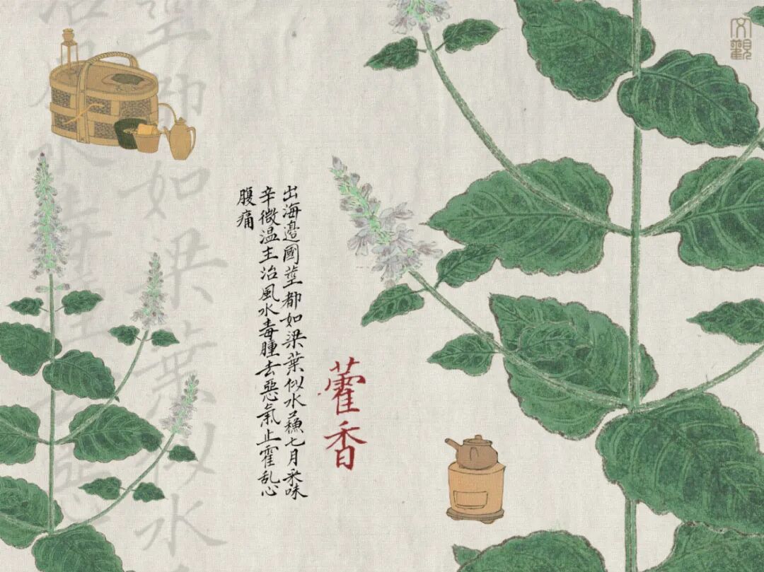 《本草纲目》载,芳香,豆叶曰藿,其叶似之,故名藿香。