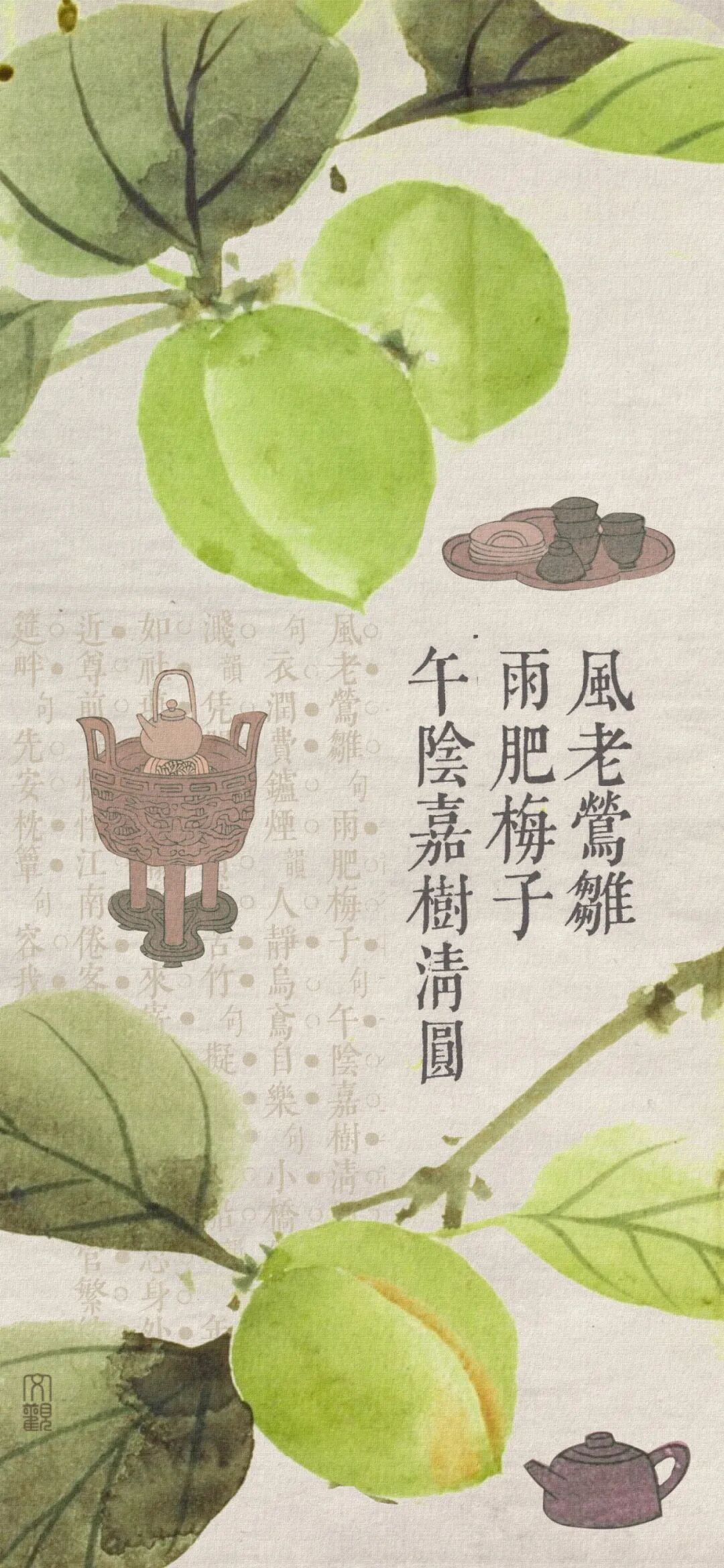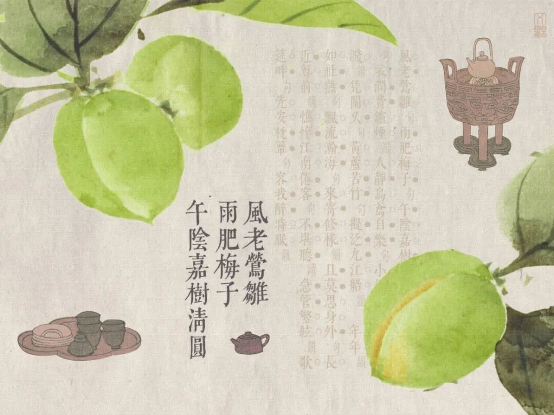 梅子,又名青梅,原产中国淮河以南的广大地区。中国人的情愫常常借外物表达,生于春夏之交的梅子便常常以夏天或青春的代表出现在中国诗词中。