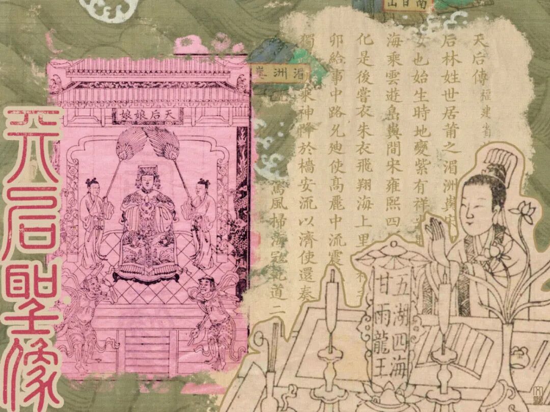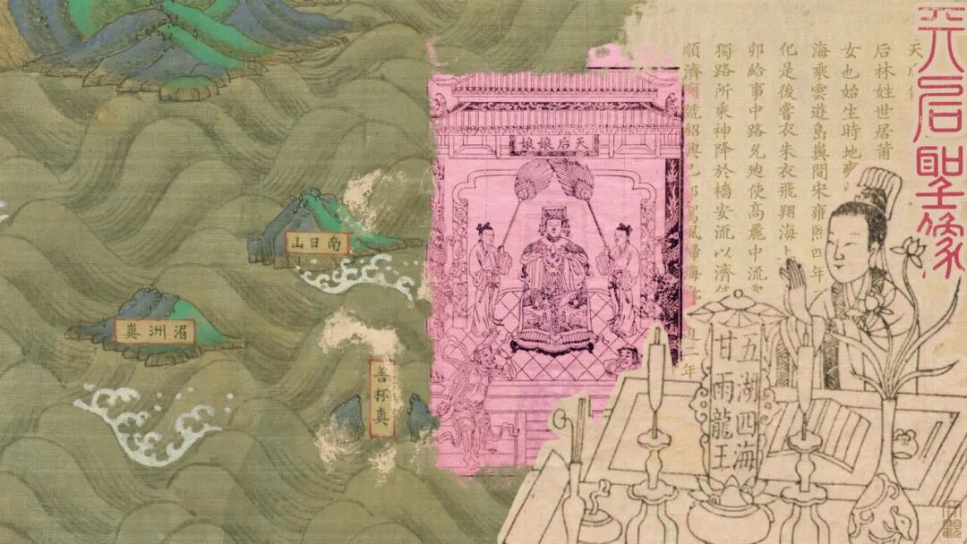 素材:天后圣像.清乾隆时期福建修文堂刊本/福建省海岸全图.绢本设色.清代绘本