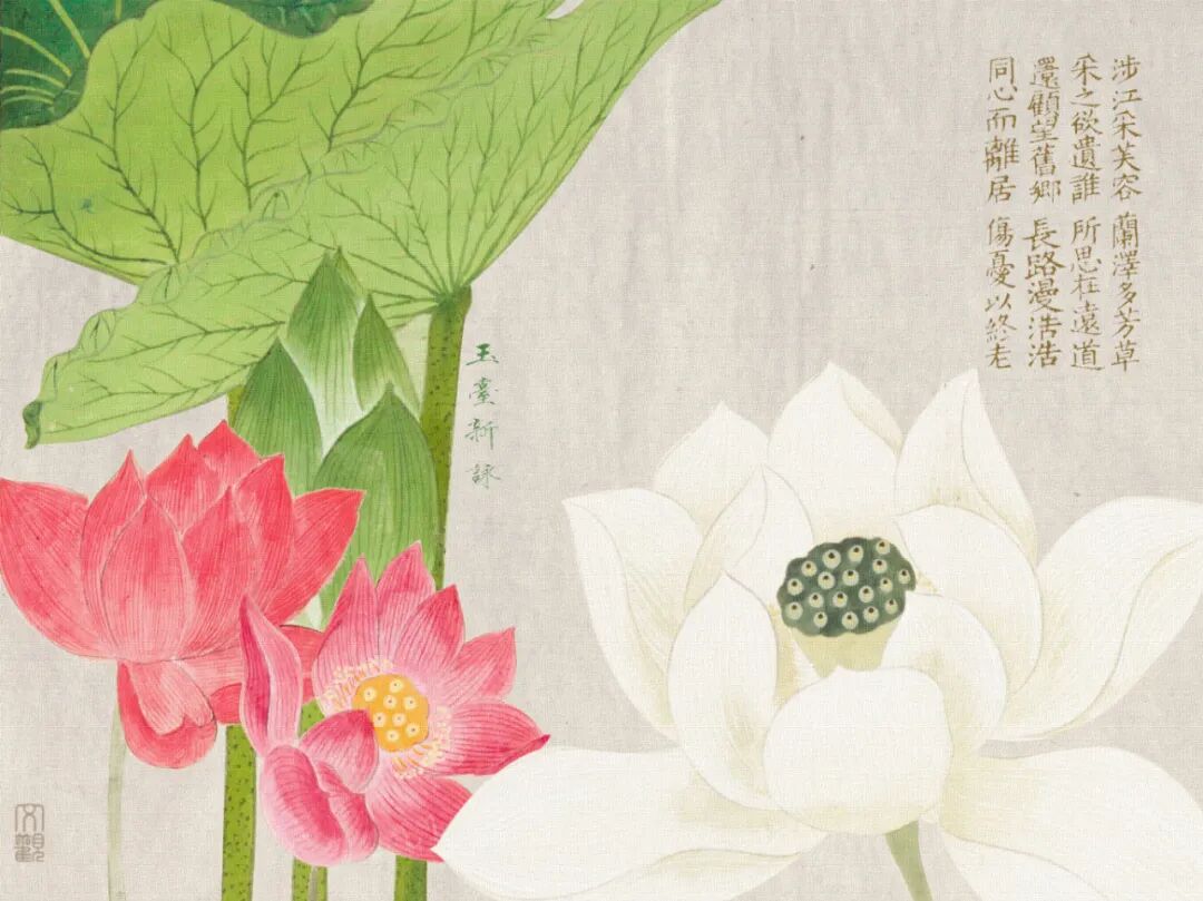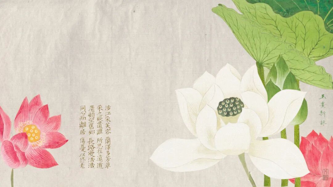 江水清凉,蓝天悠悠,清风徐来。水泽中长满了兰草和芙蓉花。