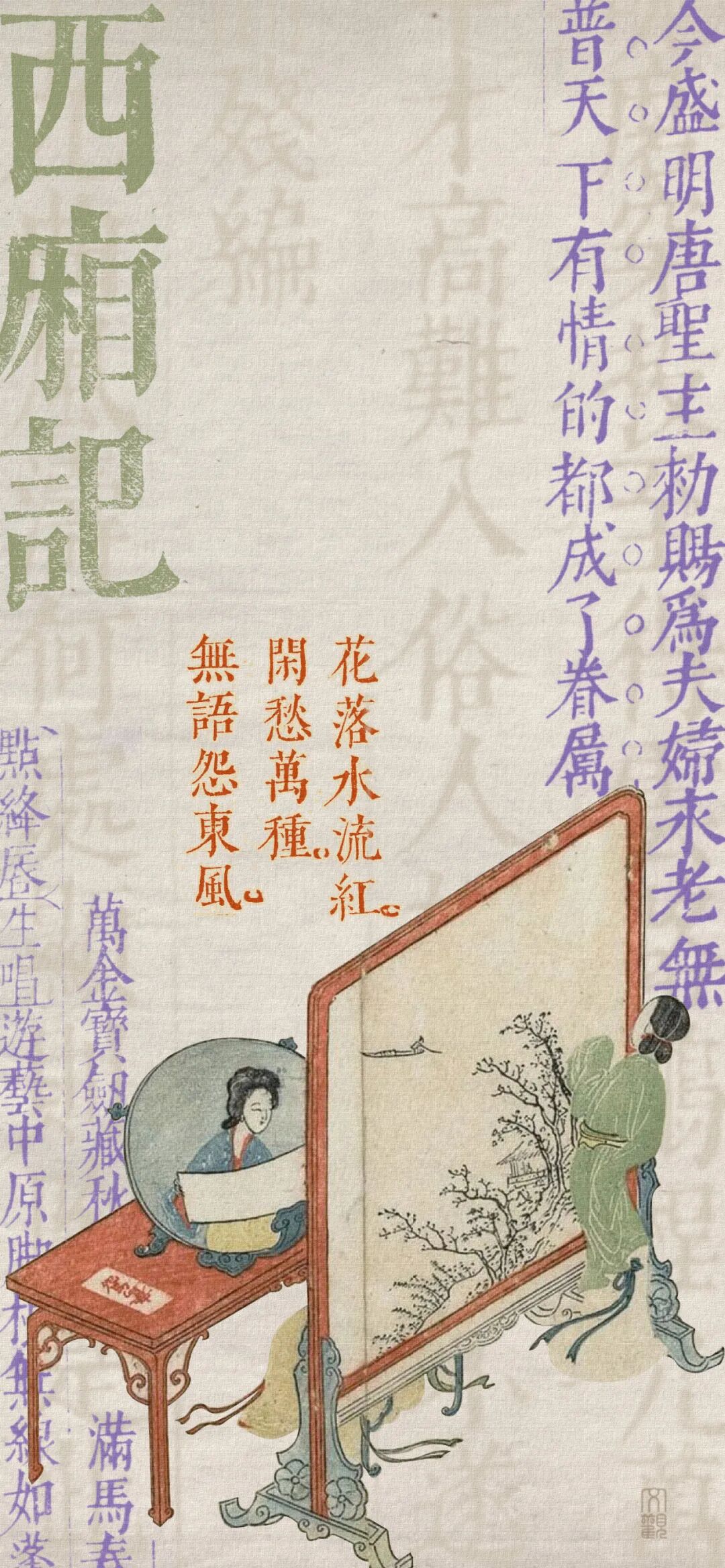 话说相国府千金崔莺莺在普救寺中为父亲扶灵,与张生相遇,一见钟情,无计表白。