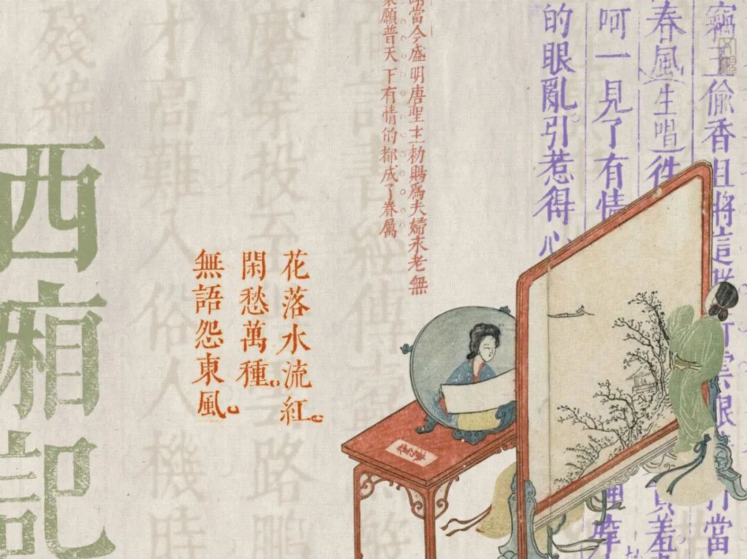 素材:西厢记.五卷.元.王实甫撰.附元人增对奕.会真记各一卷.明末乌程凌氏刊朱墨套印本