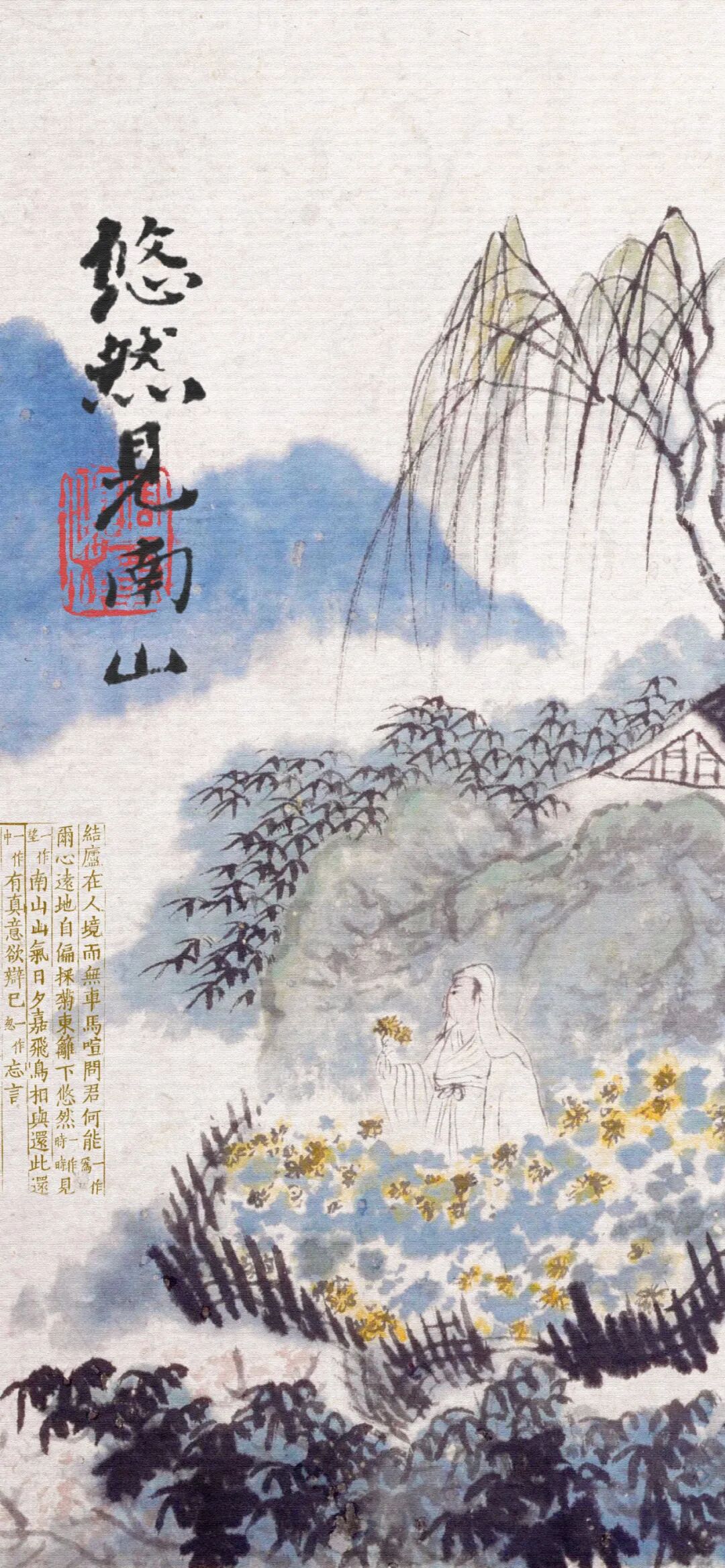 采菊东篱下,悠然见南山。山气日夕佳,飞鸟相与还。