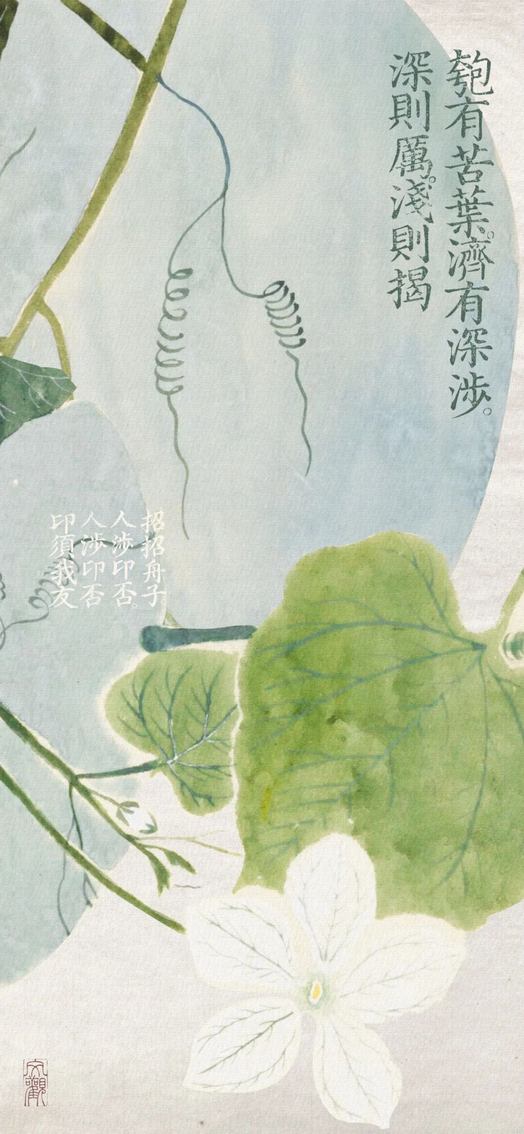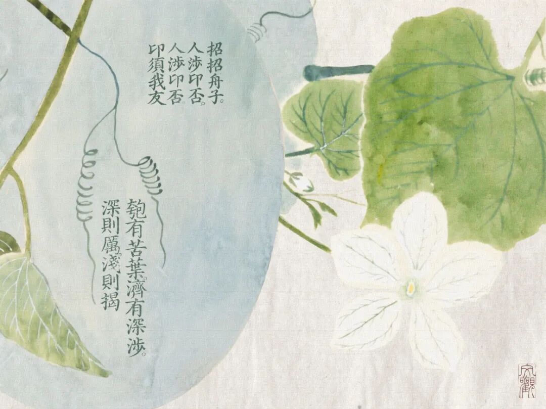 葫芦瓜叶有苦味,济水步行能过河。深就垂衣缓缓过,浅就提裙快快走。