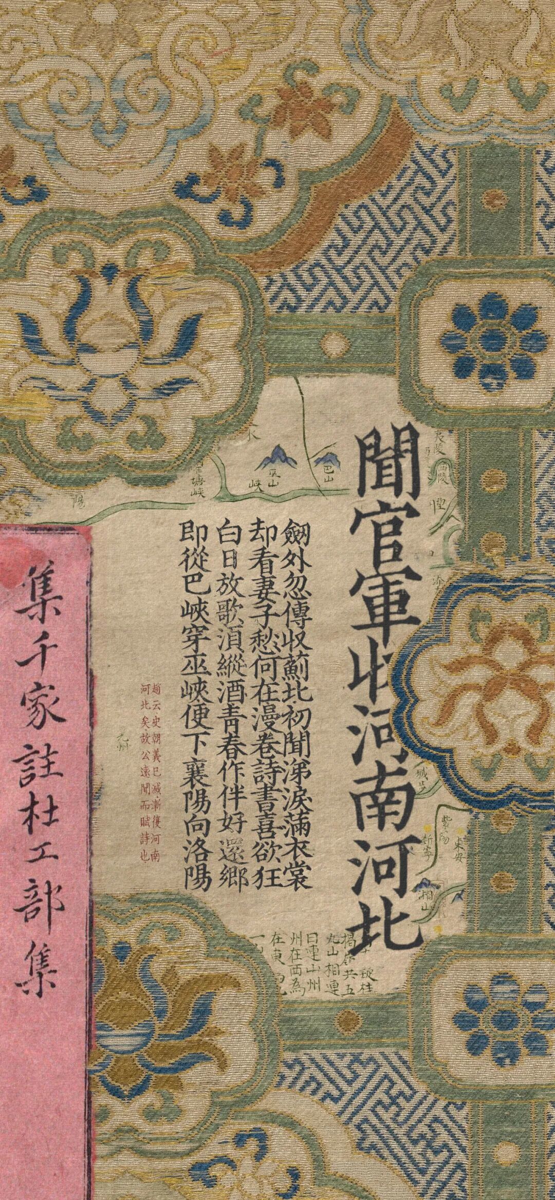 素材:新刊校定集注杜诗.卷12至24.总三十六卷.唐.杜甫.撰.宋.郭知达.集注.南宋宝庆元年广东漕司刊本.有抄配.台北故宫博物院藏/集千家注分类杜工部诗.二十五卷.文集两卷.唐.杜甫撰.徐居仁编.元广勤书堂刊本