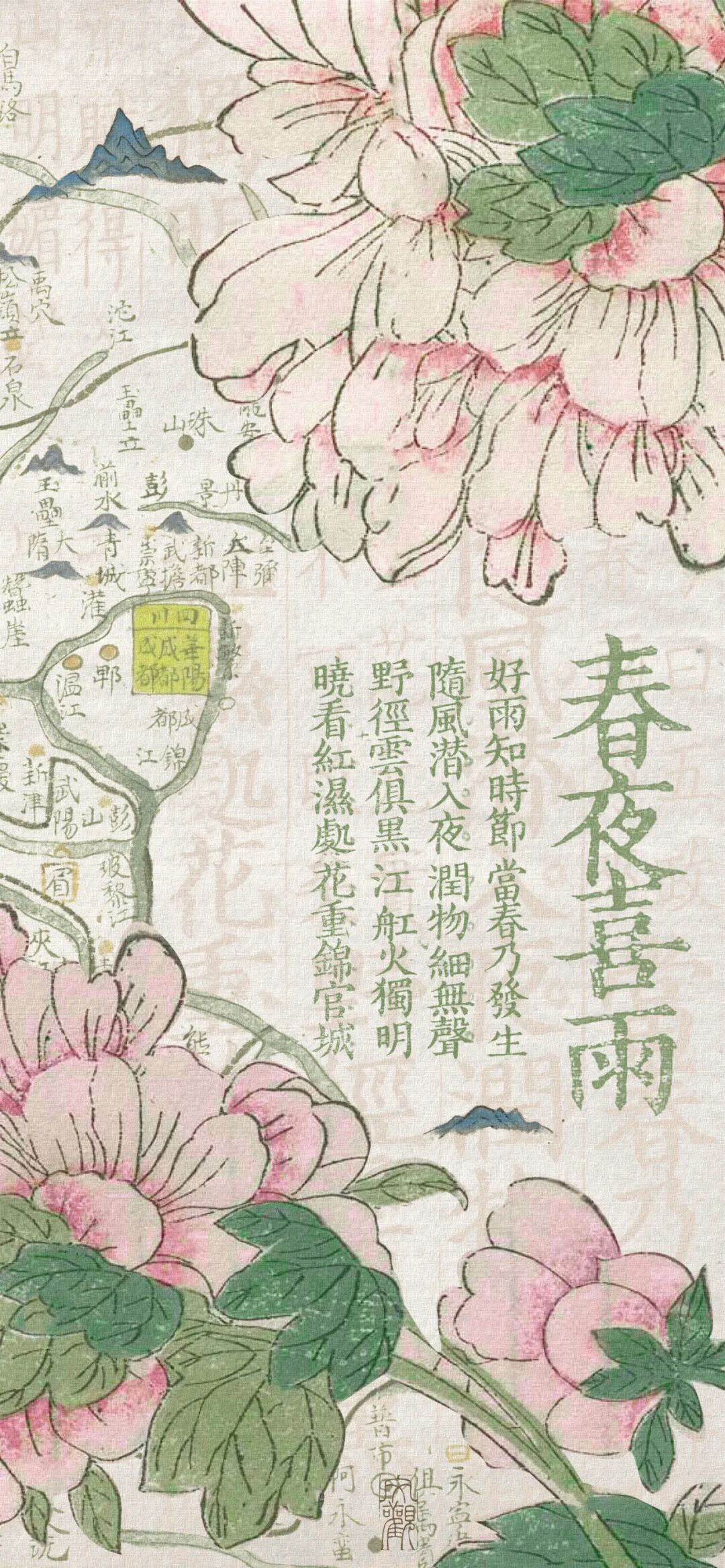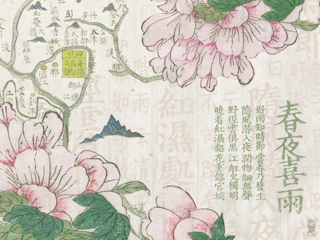 “好雨知时节,当春乃发生。”从第一句第一字我们就感受到了杜甫的心情。安史之乱中杜甫四处漂泊,总算在成都安家定居,今年的收成估计也不错。安然,恬静,带着一些激动。像是大病初愈后的带着释然的欣喜,此时的眼睛里,看一切平常的事物都显得格外可爱。