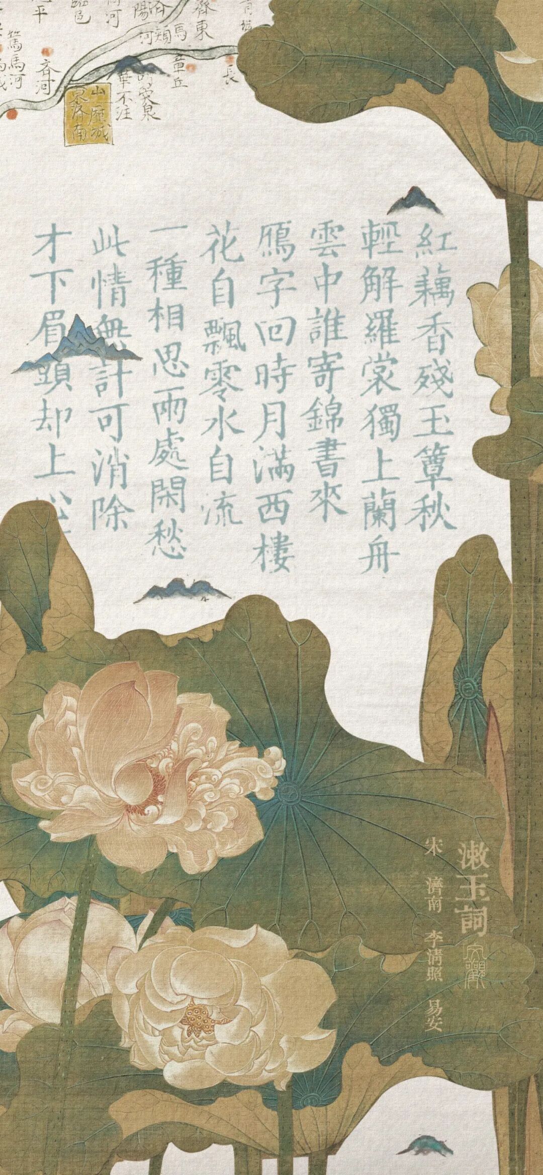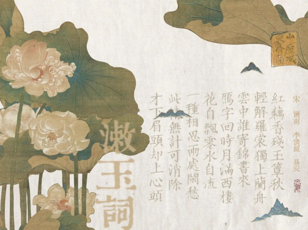 在这首词中,李清照用花朵飘零,流水东去,来比喻思念之情,将分隔两地的愁思具象化,表达出此情无法消除的无奈与怅恨,流露出词人对丈夫的一腔深情以及对年华逝去的忧思。读来让人感受收到诗人的文雅灵气,无愧“第一才女”的雅称~