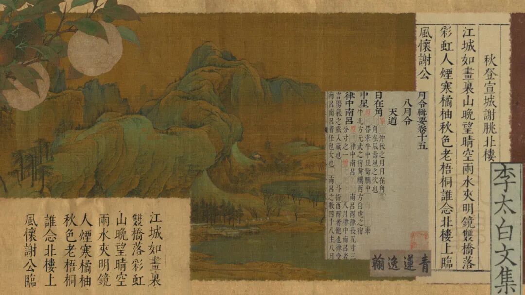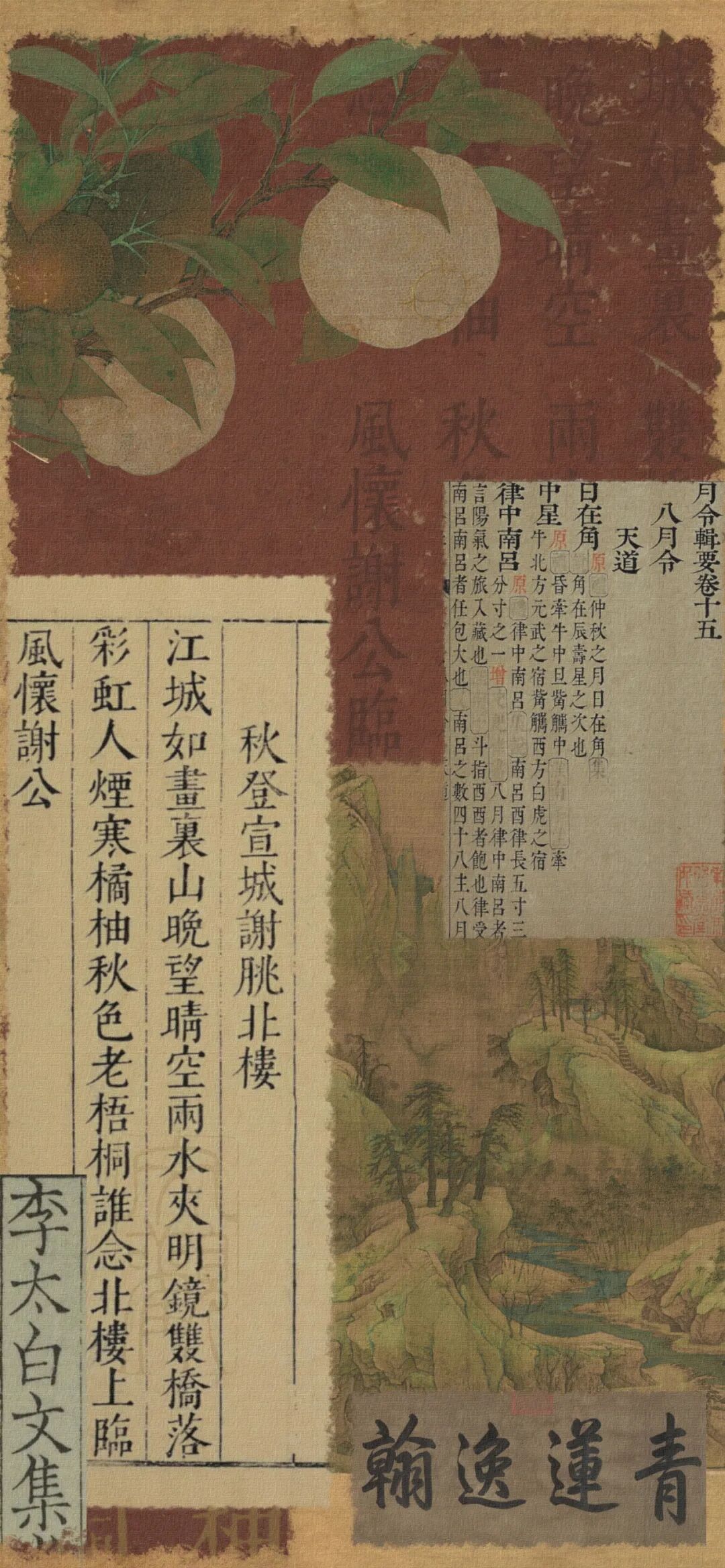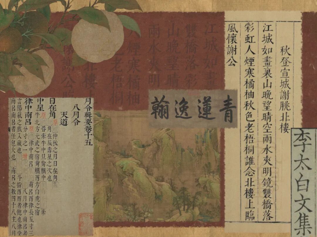 《秋登宣城谢脁北楼》是一首五言律诗。此诗首联从大处落笔,写登楼远眺,总揽宣城风光;颔联具体写“江城如画”:以明镜喻秋水的清澈澄明,以彩虹喻双桥的水中倒影;颈联具体写“山晚晴空”:傍晚秋色,山野炊烟,橘柚深碧,梧桐微黄。尾联点明怀念谢脁之题旨,与首联呼应,从登临到怀古,抒发了对先贤的追慕之情。全诗语言清新优美,格调淡雅脱俗,意境苍凉旷远。