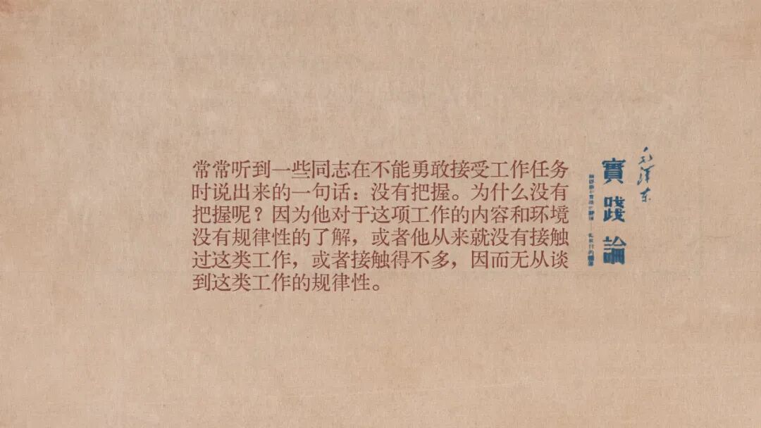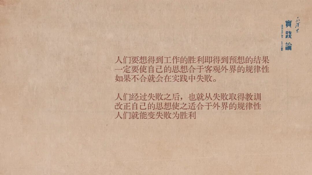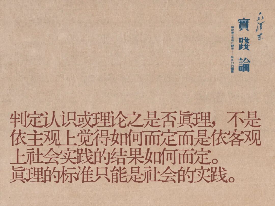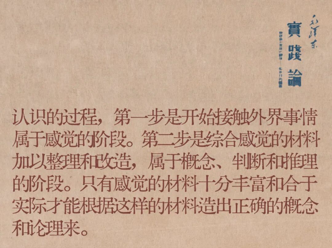 “通过实践而发现真理,又通过实践而证实真理和发展真理。从感性认识而能动地发展到理性认识,又从理性认识而能动地指导革命实践,改造主观世界和客观世界。”