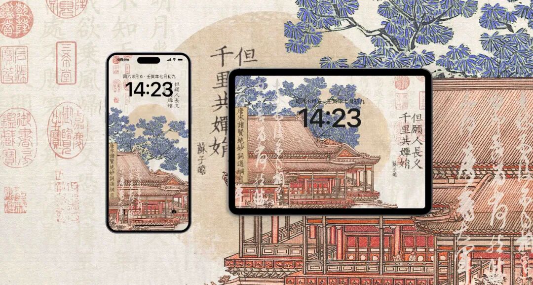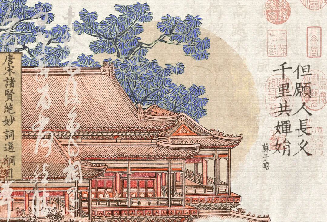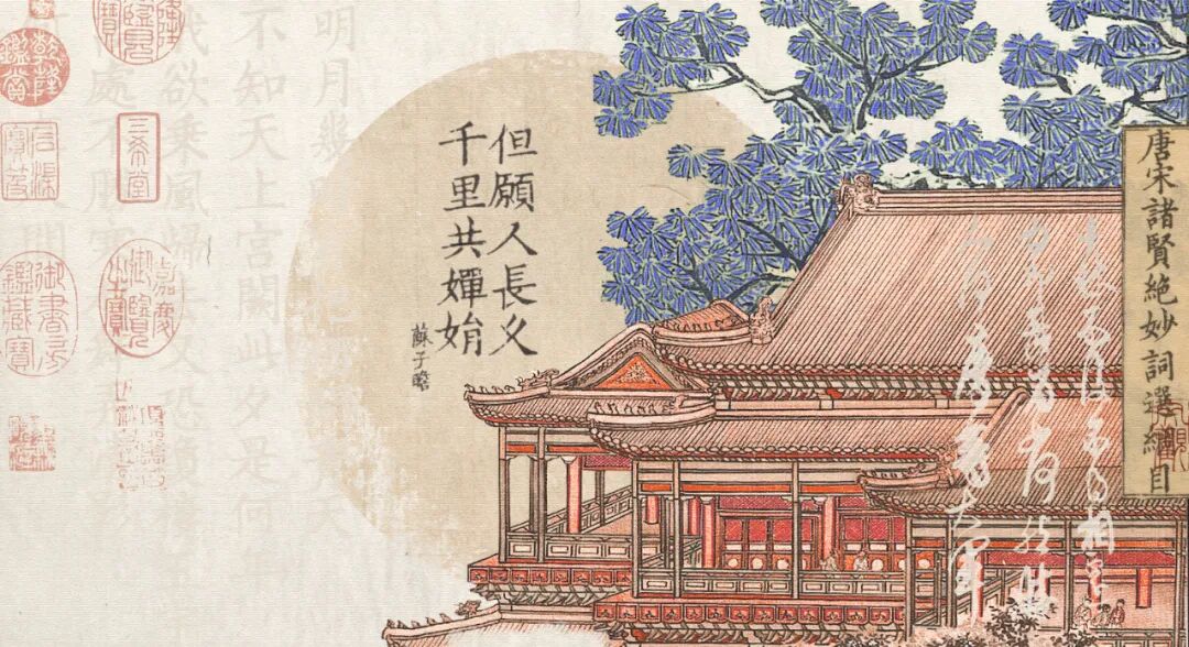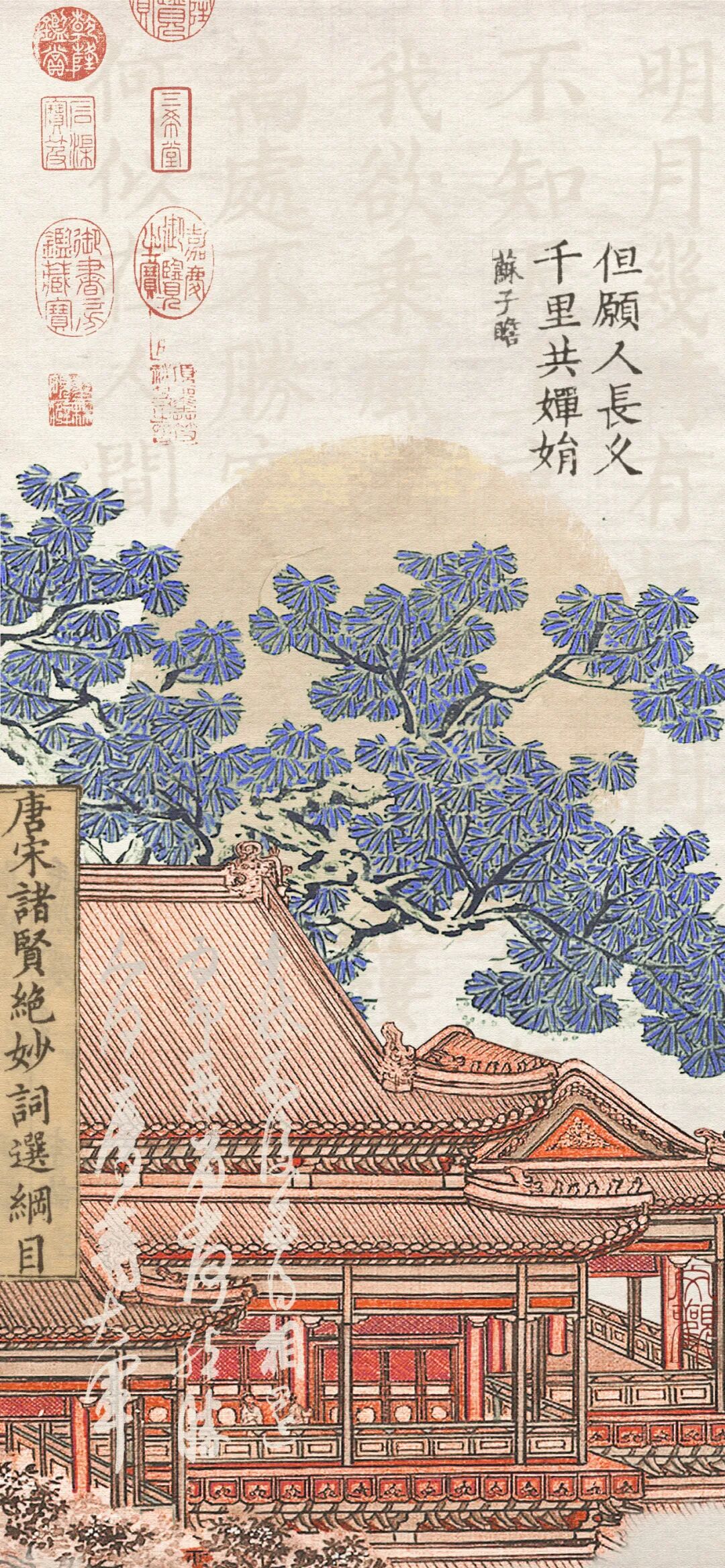 素材:中秋佳庆图轴.清.张廷彦.绘.绢本设色(134.5x65.4厘米)台北故宫博物院藏 / 唐宋诸贤绝妙词选 十卷.(宋)黄升辑