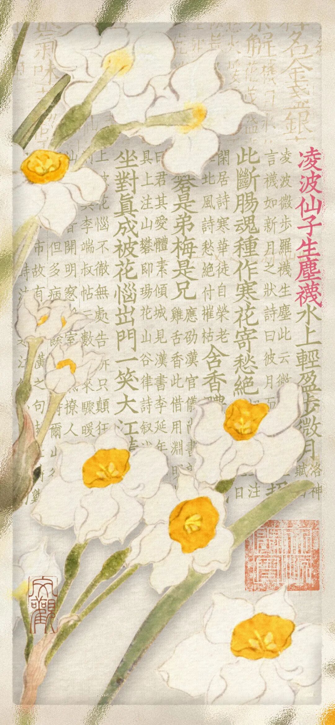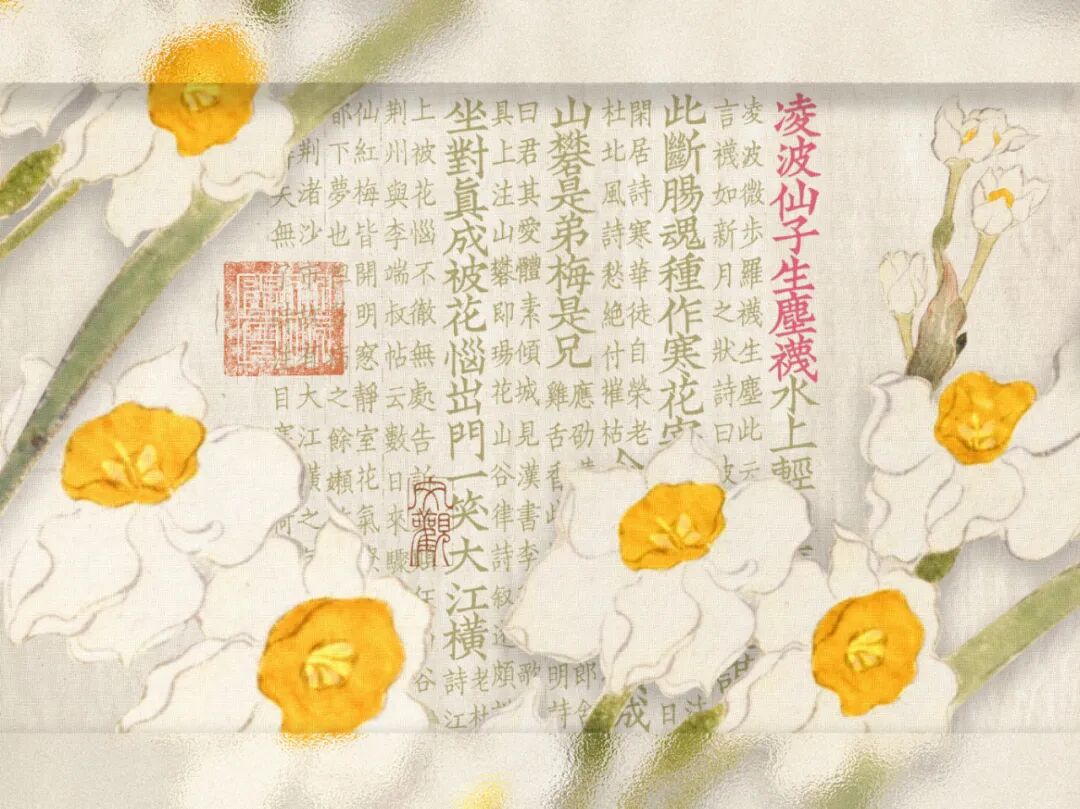 在唐代开始,文学作品已经有关于水仙花的描写,宋代诗词中开始大量出现。