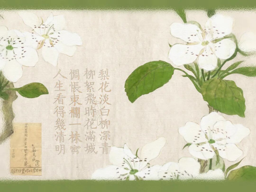 如雪般的梨花颜色淡淡,柳树已长得郁郁葱葱,柳絮飘飞的时候梨花也已开满城。
