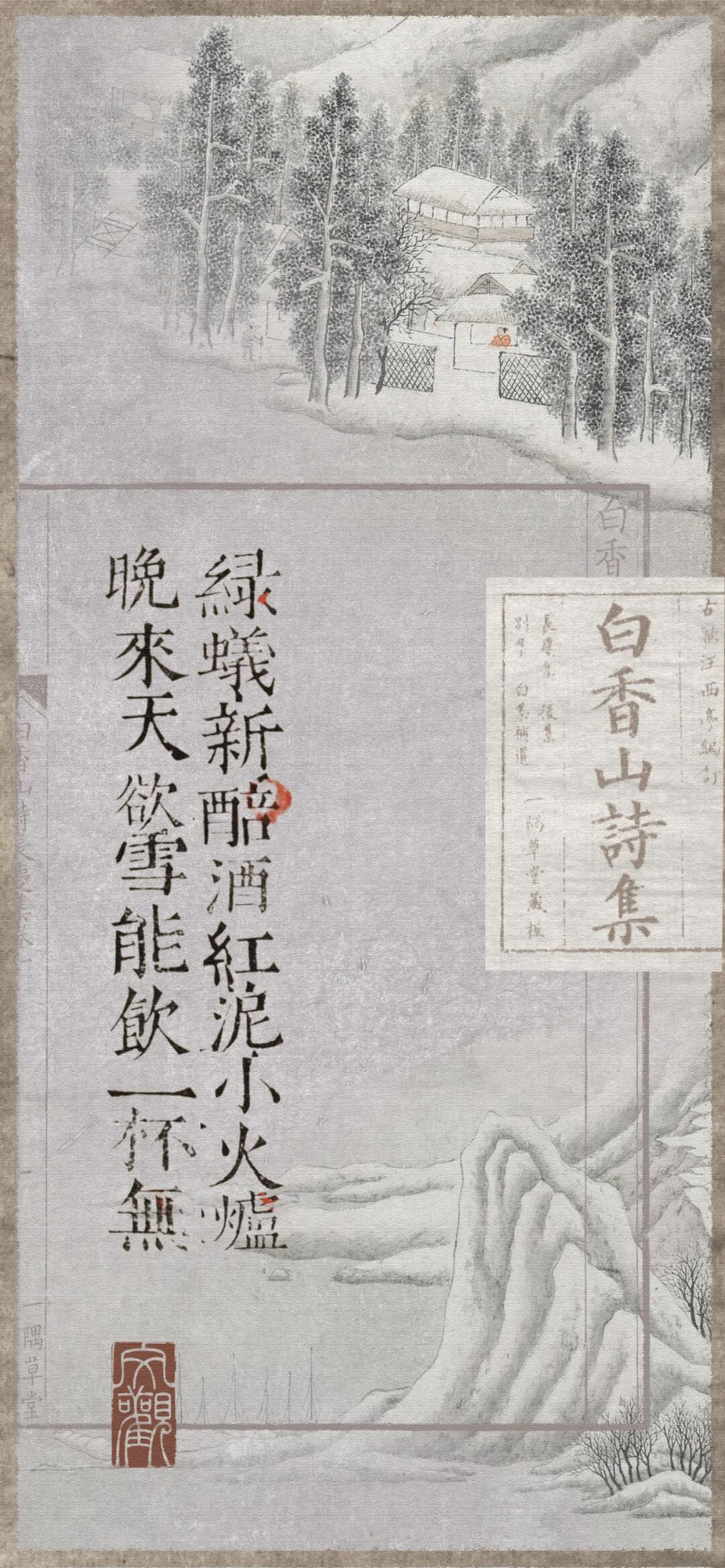 新酿的米酒,色绿香浓;小小红泥炉,烧得殷红。