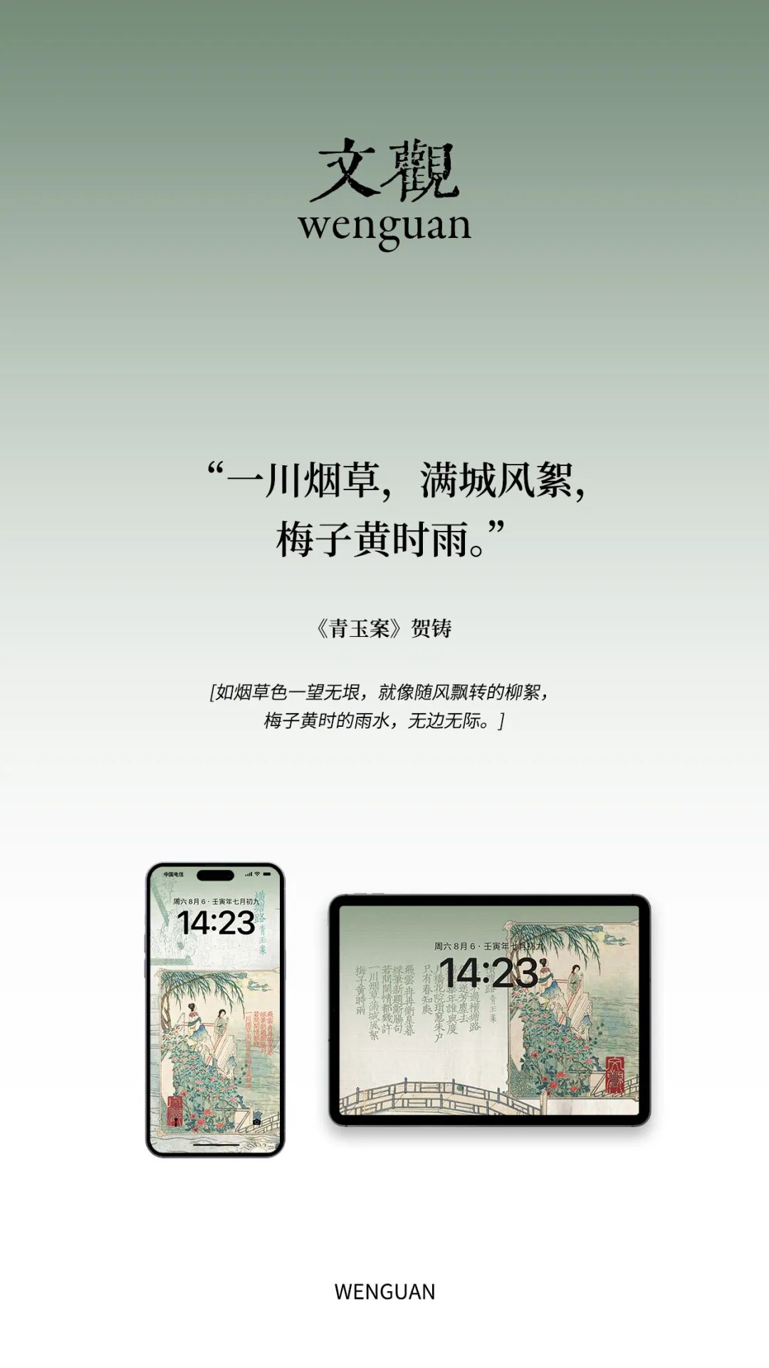 天上飞云在空中拂过,长满杜蘅的小洲在暮色中若隐若现。佳人一去而不复返,我用彩笔写下伤感的诗句。要问我的忧伤有多深多长?就像如烟草色一望无垠,就像随风飘转的柳絮,梅子黄时的雨水,无边无际。