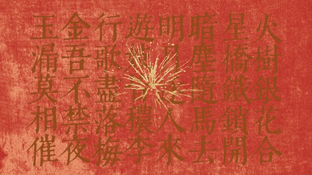 明灯错落,园林深处映射出璀璨的光芒,有如娇艳的花朵一般;由于四处都可通行,所以城门的铁锁也打开了。人潮汹涌,马蹄下尘土飞扬;月光洒遍每个角落,人们在何处都能看到明月当头。月光灯影下的歌妓们花枝招展、浓妆艳抹,一面走,一面高唱《梅花落》。京城取消了夜禁,计时的玉漏你也不要着忙,莫让这一年只有一次的元宵之夜匆匆过去。