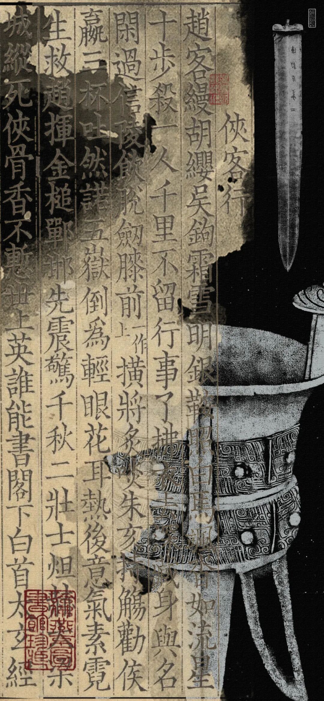 诗人在热情地颂扬侯嬴和朱亥“二壮士”的同时,也对校书天禄阁草《太玄经》的扬雄等人,毫不留情地加以讽刺:“谁能书阁下,白首《太玄经》?”最后两句以扬雄对比侠客精神的高尚和伟大。