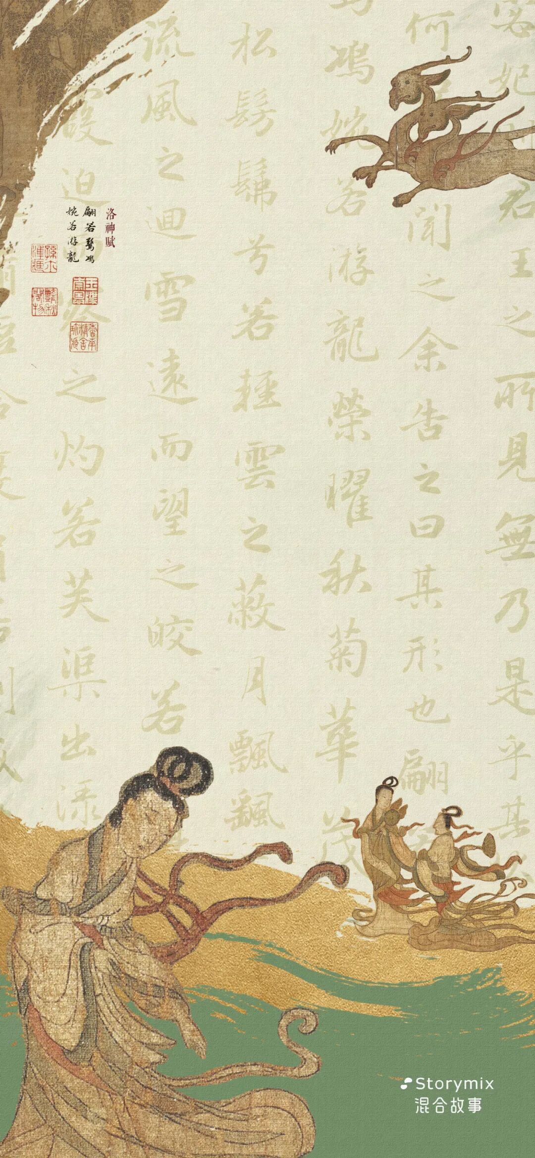 返回封地途中夜宿舟中时,恍惚间看见甄妃驾风踏浪而来,惊醒后发现原来是一场梦。回到鄄城后,曹植对梦中与洛水边见到甄后的情景难以忘怀,文思泉涌之下写成一篇《感甄赋》。四年后(公元234年)明帝曹叡继位八年后为避母名讳将《感甄赋》改名为《洛神赋》。