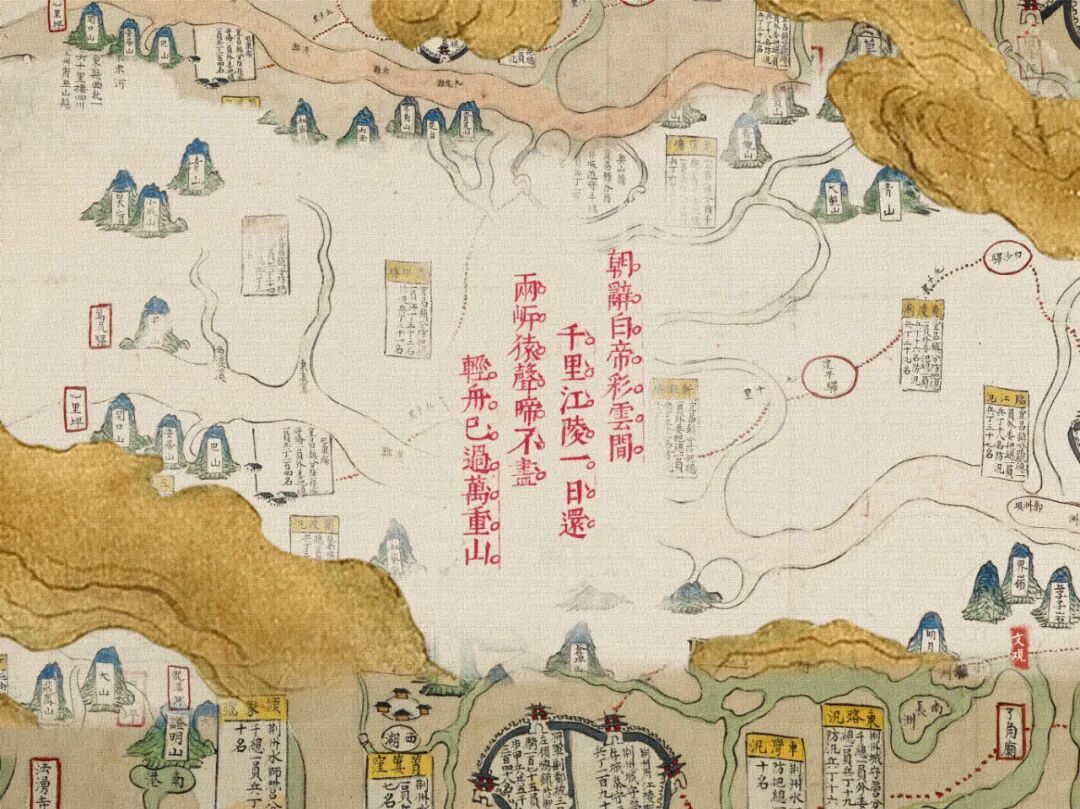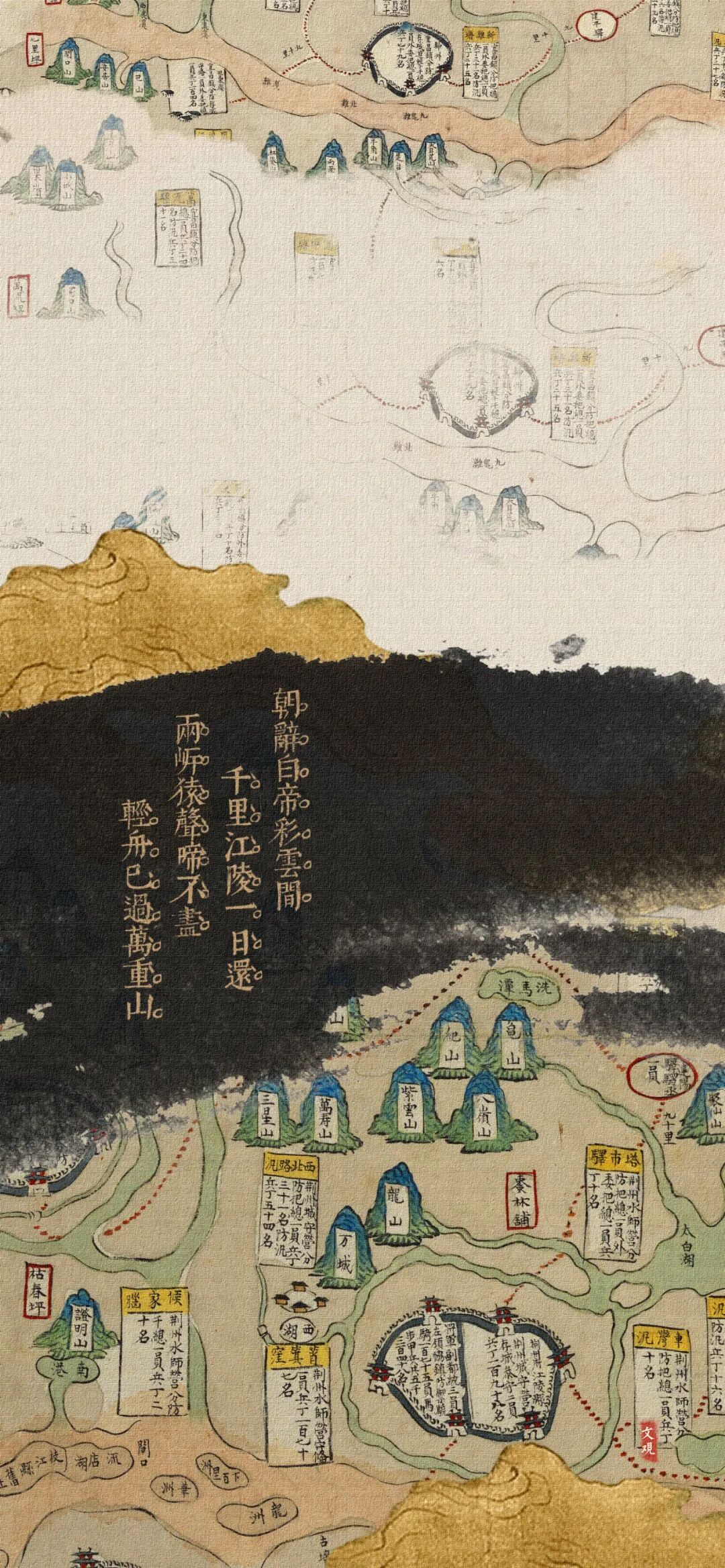 《彩绘湖北地图》.清代青绿彩绘.29992x13372像素.法国国家图书馆藏