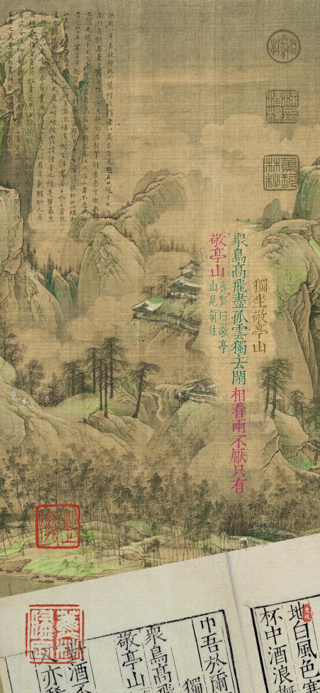 诗人的笔下,敬亭山的秀丽山色、溪水、小桥等景观并未直接描绘,但这并不意味着敬亭山缺乏值得描绘的元素。实际上,敬亭山"东临宛溪,南俯城闉,烟市风帆,极目如画",具有丰富的景观资源。然而,诗中并未揭示诗人相对于山的位置,可能是在山顶,也可能在开阔地带,但这已经不是关键。