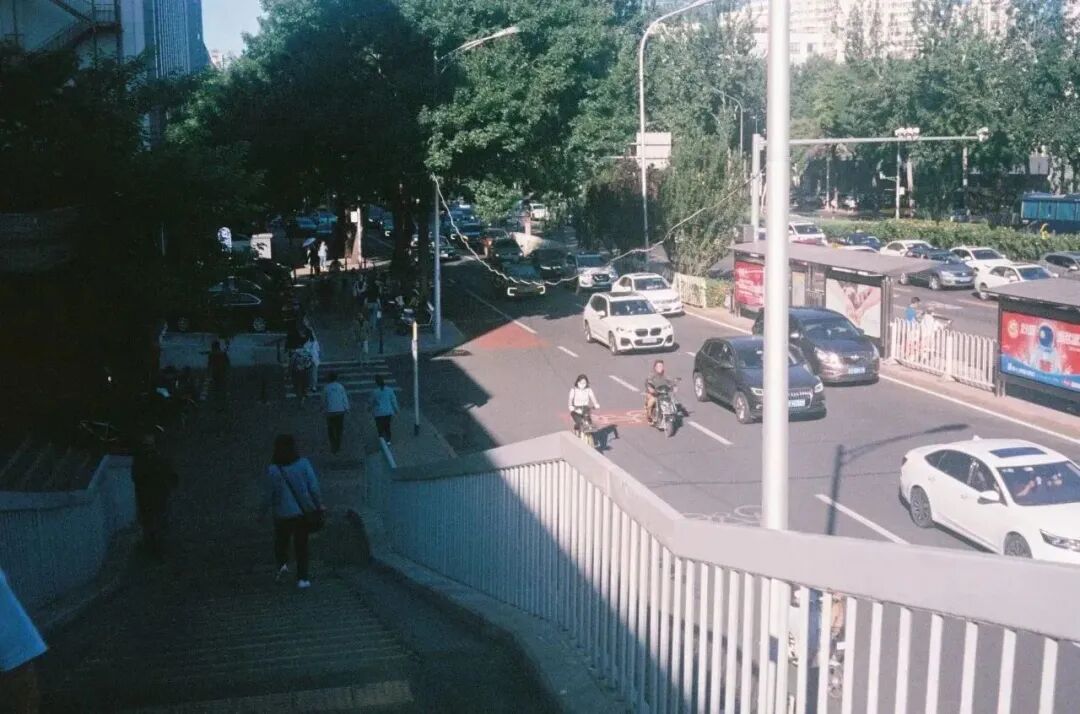 但有明显的感触,我会去思考当下新媒体平台上所不曾流行的日常影像,关于生活的记录,常有唯美的、清新的、简约的、有所设计的镜头在网络上流行。这类摄影作品在我看来是带有明显目的性且常将画面内容升华的虚假影像,真实在此时显得尤为重要。如若只是单纯的色彩滤镜也并不会影响画面内容的“真实”,我所追求的画面是在不经意间对生活的凝望,也许就是普通的街头,也许就是建筑上的几缕反光,是容易错过但又会在拍摄后浮现在脑海里的悠长画面。