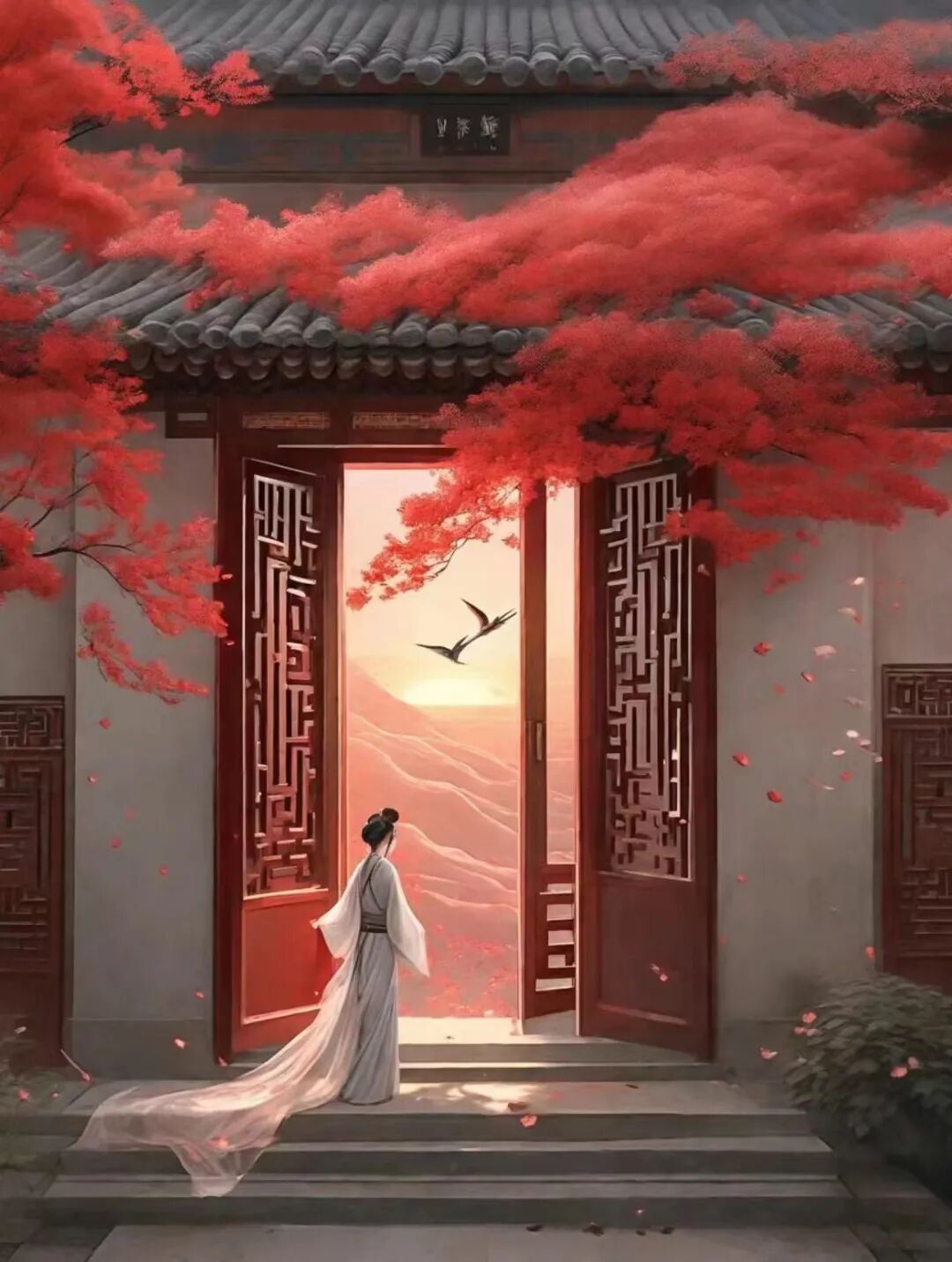 月色皎洁,清冷幽深,桂花香轻轻飘落在人的衣上。