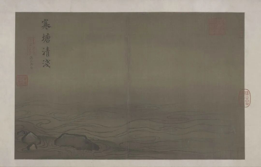 马远现存另一著名作品《水图》卷,共12幅,这幅画卷,专门画水,除个别幅有极少岩岸之外,无任何别的景色,生动而熟练地描绘出水在自然间的不同变化,表现出不同的意境。关于画水,历代不乏其人,苏轼说: