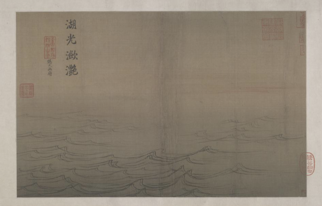 注:第一段因残缺半幅而无图名,故未放入,其余图名分别是:“洞庭风细”、“层波叠浪”、“寒塘清浅”、“长江万顷”、“黄河逆流”、“秋水回波”、“云生沧海”、“湖光潋滟”、“云舒浪卷”、“晓日烘山”、“细浪漂漂”。
