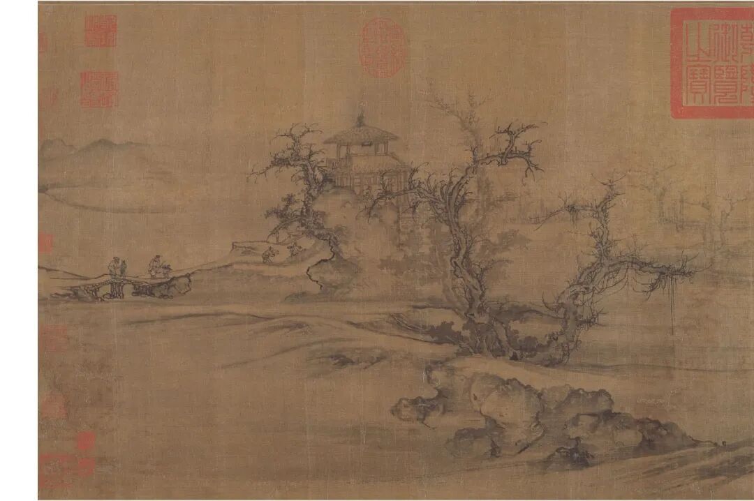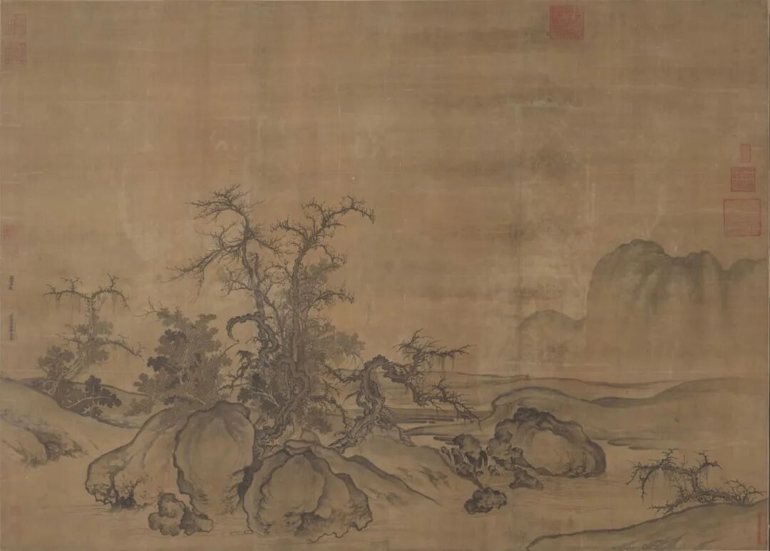 郭熙虽师法李成,但他将李成画树石的技法典型化为“蟹爪枝”与“卷云石”,“放手作长松巨木,回溪断崖,岩岫巉绝,峰峦秀起,云烟变灭,晻霭之间,千态万状”。