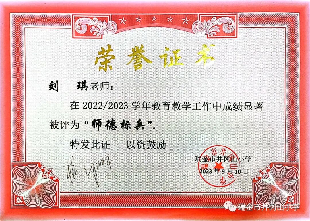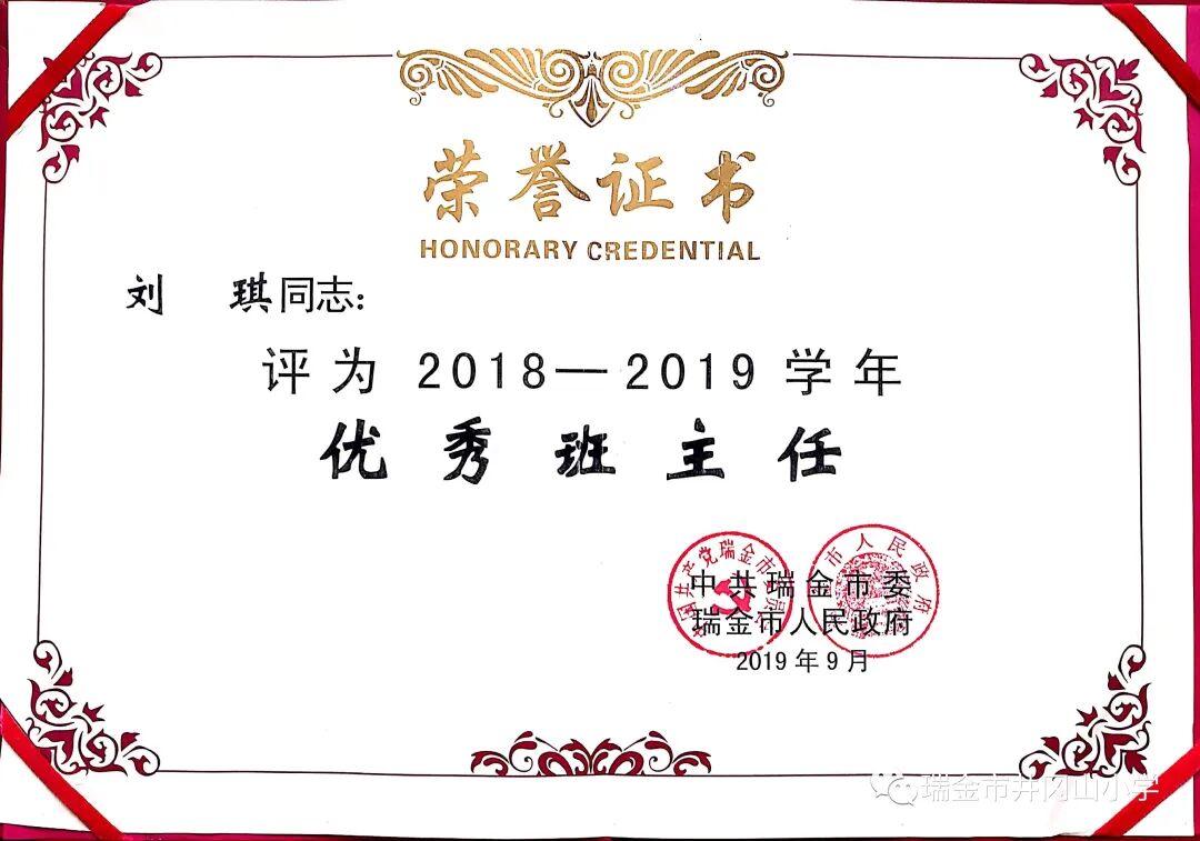 刘琪,中小学二级教师。2013年8月参加工作,本科学历,曾被评为“瑞金市优秀班主任”、“瑞金市井冈山小学师德标兵”。“想,要凌云壮志;做,要脚踏实地”。她凭着这种坚定的信念,在教育教学路上默默奉献,辛勤耕耘。