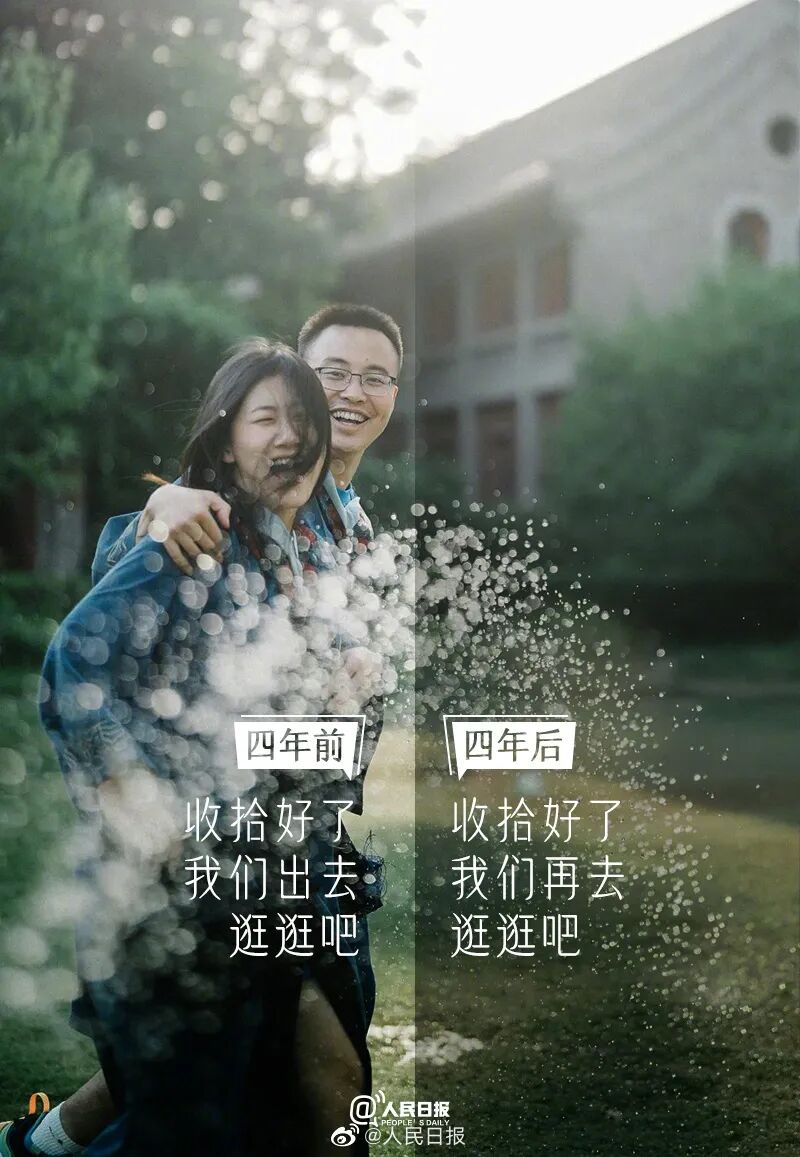 “收拾好了,我们出去逛逛吧”和“收拾好了,我们再去逛逛吧”,脑海中浮现的是你我们刚进入大学充满憧憬和毕业时依依不舍的画面。