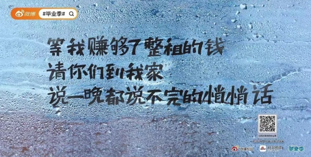 青春总是充满遗憾,微博校园还列出了毕业的100个遗憾,比如:没早点开始实习、没有足够勇敢、没有毕业旅行、没有去看演唱会、没拿到奖学金、没有好好说再见......