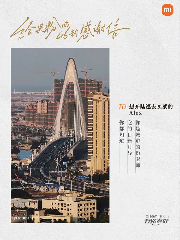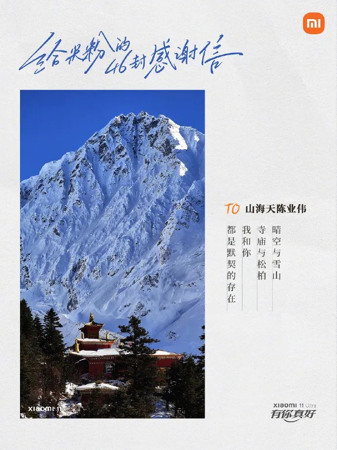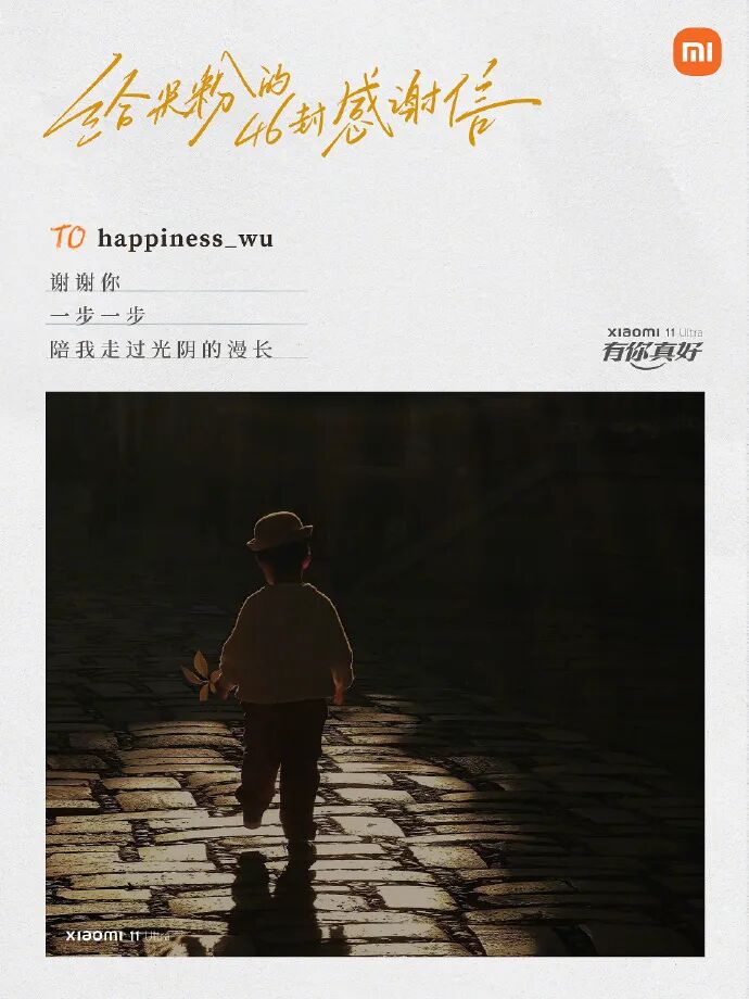 在4月6日米粉节来临之际,小米以小米11Ultra的口吻执笔书写了46封感谢信,献给与小米同行走过11年光阴的米粉们。