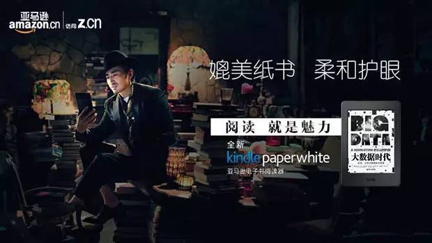 黑白色调的构图,呼应了kindle水墨屏的产品特色,也从黑白的色调上体现了“阅读很沉闷,世界很多彩”的反差含义,再一次呼应了“读书的人,有梦可做”这一文案。