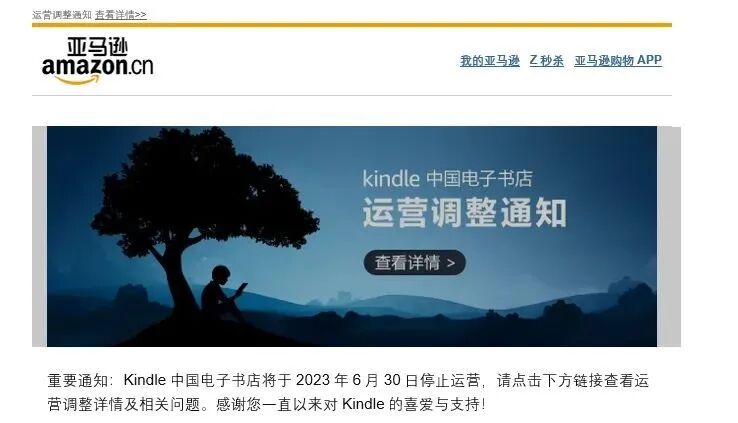 然而现代人越来越不爱读书,近日,Kindle官方通知,自即日起,亚马逊将会停止向经销商供应新的Kindle电子书阅读器,并将于2023年6月30日在中国停止Kindle电子书店的运营。