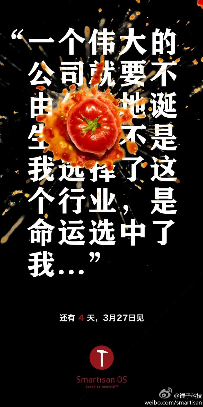 锤子操作系统发布会预告海报海报文案,个性鲜明。