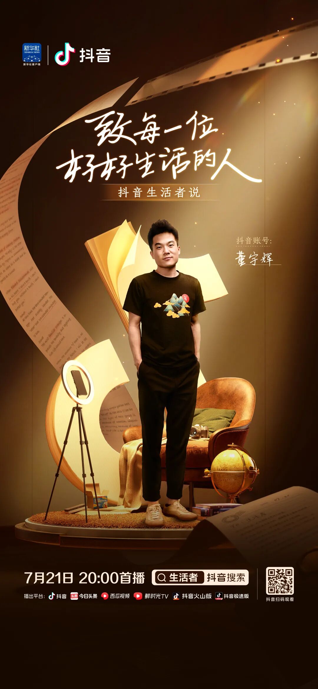 在这个节目里,能看到张同学的演讲分享、刘畊宏展示他的“全世界最大的健身房”、俞敏洪老师和董宇辉老师的精彩对谈等精彩环节,他们在各自的故事里,把对美好生活的理解讲给你听。