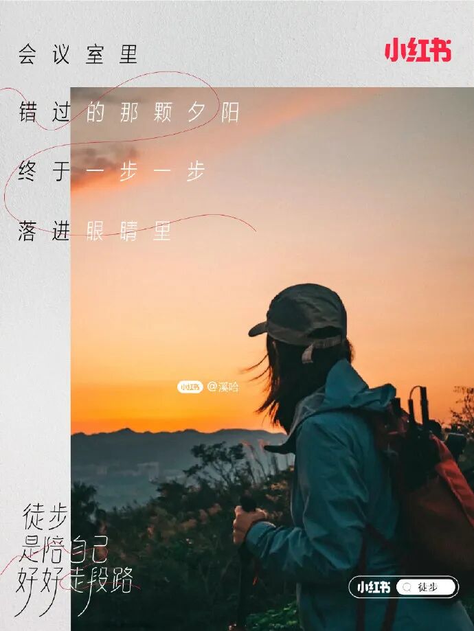 出自小红书徒步文案,错过的那颗夕阳,终于一步一步落进眼睛里,这个场景描述和意象很美。