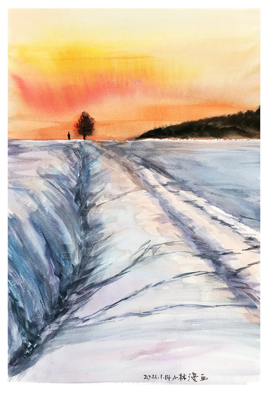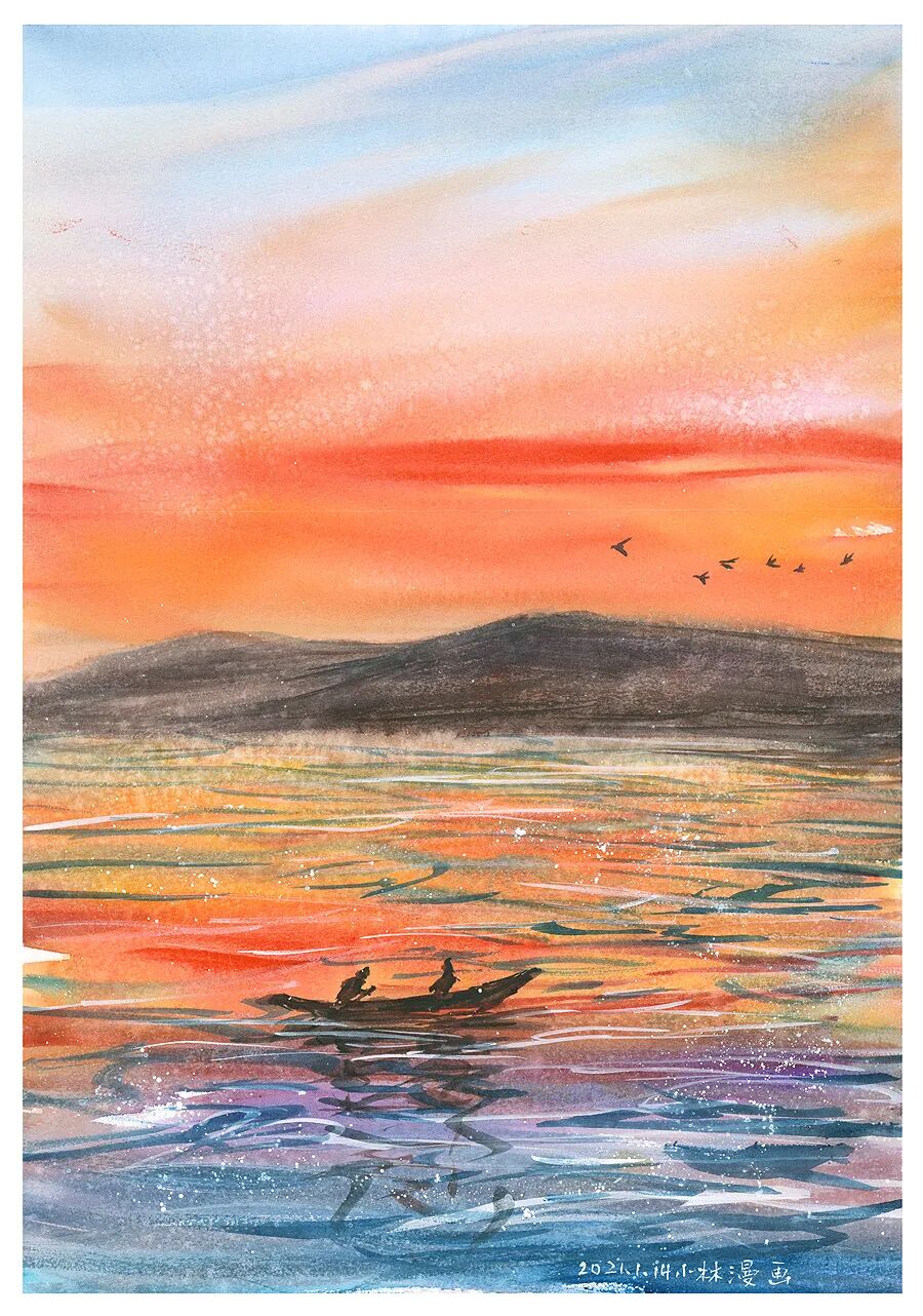 很多人说,小林的水彩画里,常常只有一个人,所以应该很孤独。