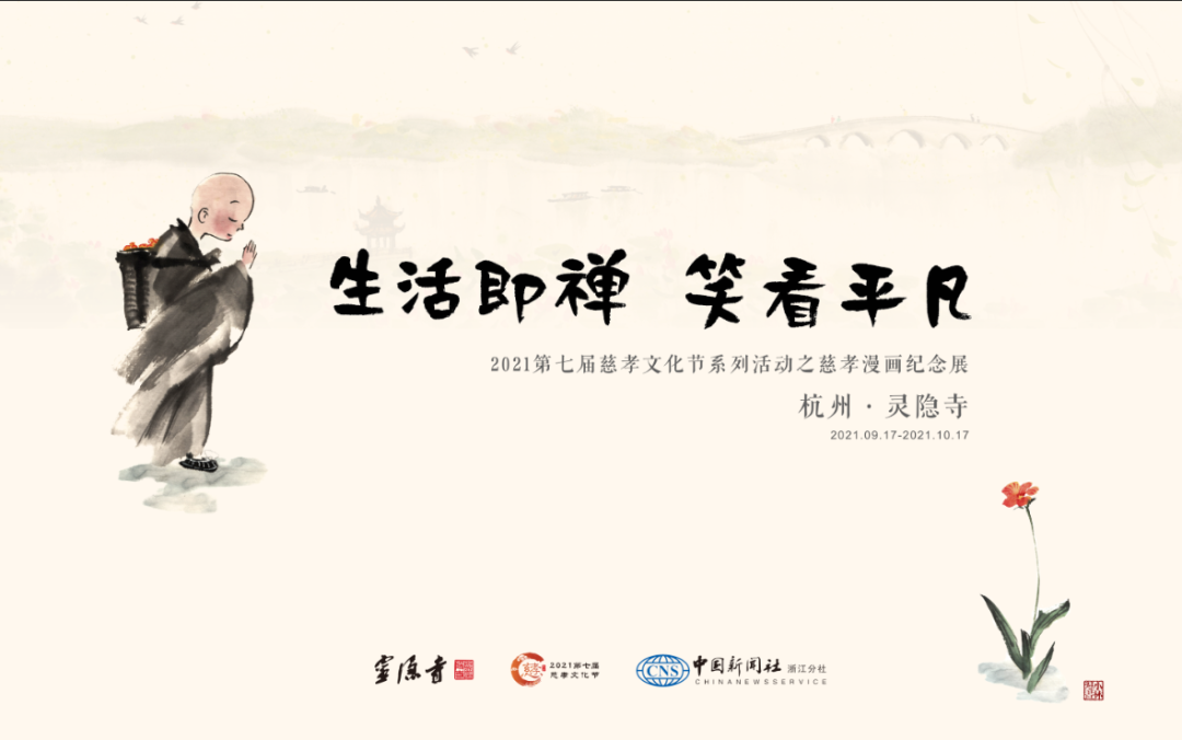“生活即禅,笑看平凡”小林漫画展,2021年的中秋时节在杭州灵隐寺开幕,现代展陈与端庄庙宇辉映,欢迎大家莅临灵隐寺看展~