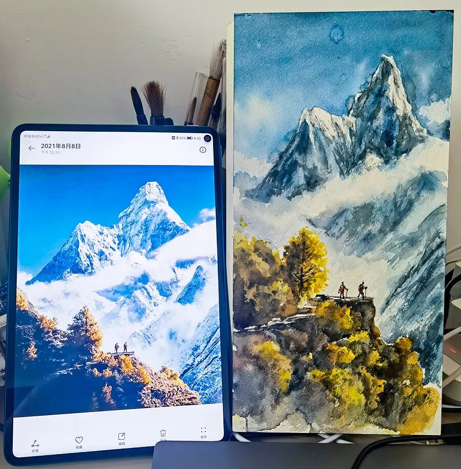 在家对着照片画