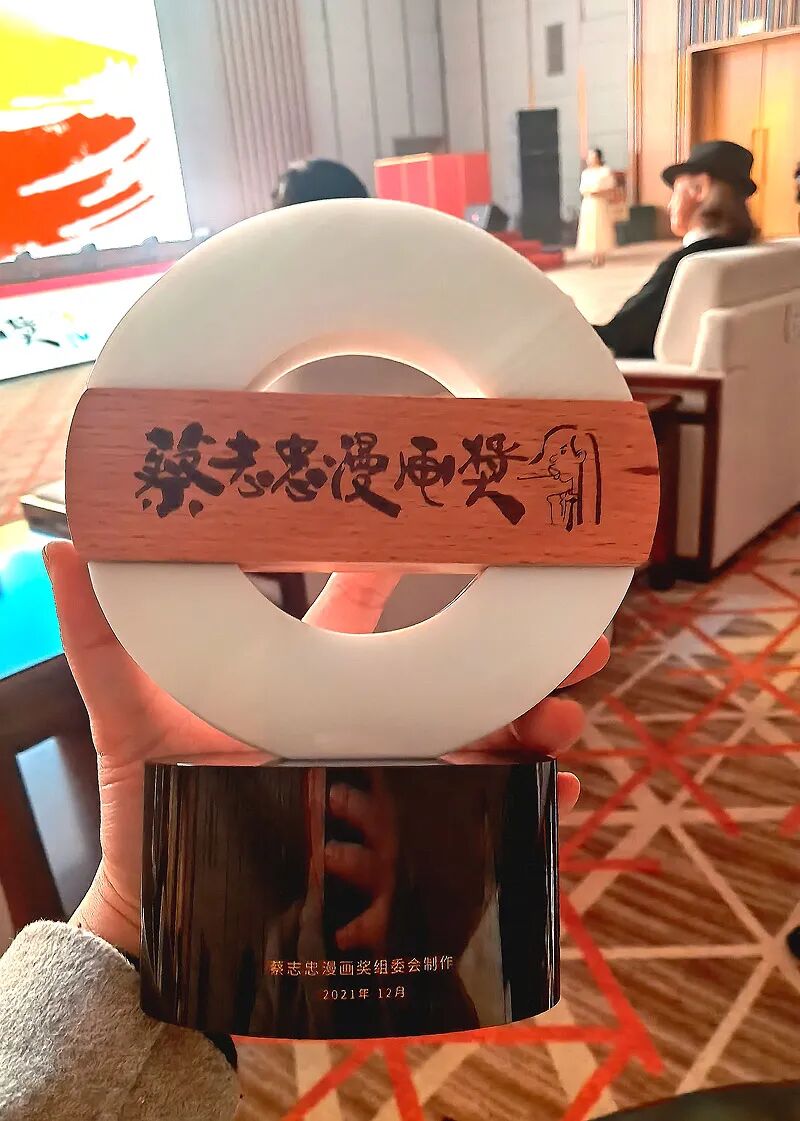 蔡志忠老师的《庄子说》,启蒙了小林的漫画之路,今天领奖致辞时,小林噙着泪光颤抖着声音许愿,把这个奖的奖金,全换成蔡老师的漫画,做公益时送到乡村去,期待能有一天,还会有乡下的孩子,因为蔡老师的漫画而启蒙发奋,他将来也能登上这个领奖台。