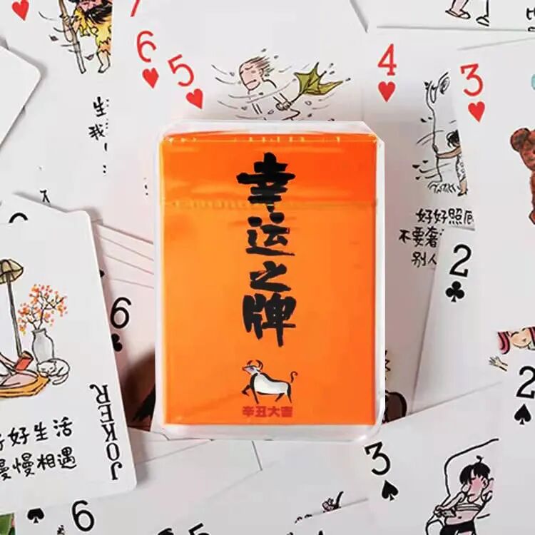 创意起源于两年前,2019年末快要过年的时候,小林突发奇想,感觉大家回家过年挺无聊的,就设计了这盒漫画扑克牌,可以随意抽一张,算算最近的运程,据后来大家的反馈,准确率奇高,特别适合亲戚聚会、朋友见面时,抽着玩大家搞笑一下,活跃气氛。