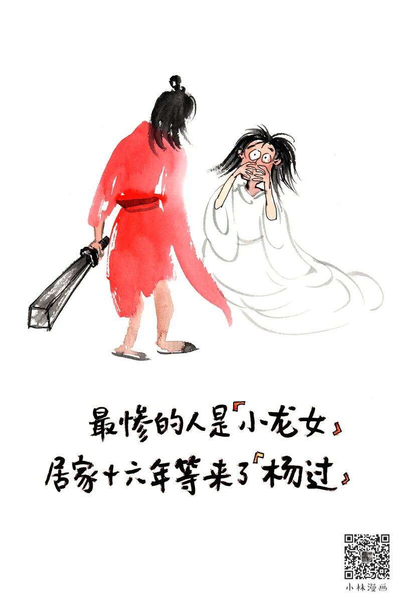 杨过后面还有无数衍生的梗,比如密接者雕兄,杨逍之后的杨不悔,杨康,阳顶天,王重阳等等,小林画了两张,已经不想再就这个题材编下去了。