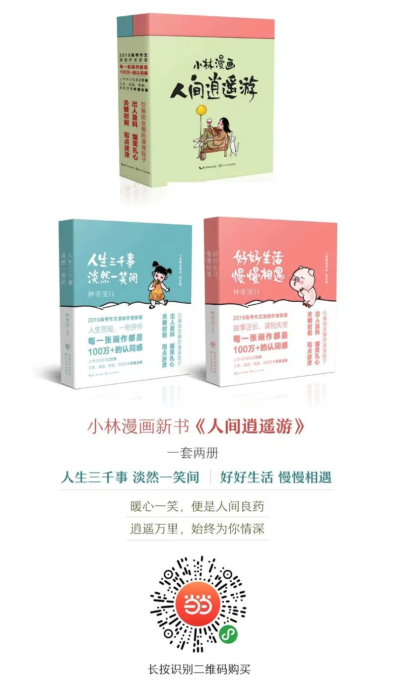 小林漫画新书《人间逍遥游》一套两册。《人生三千事,淡然一笑间》画的是成长、求学、旅行、迷茫、励志等等有趣和动人瞬间。《好好生活,慢慢相遇》画的是关于友谊、情感、性格、时光的颇多感悟与观察。